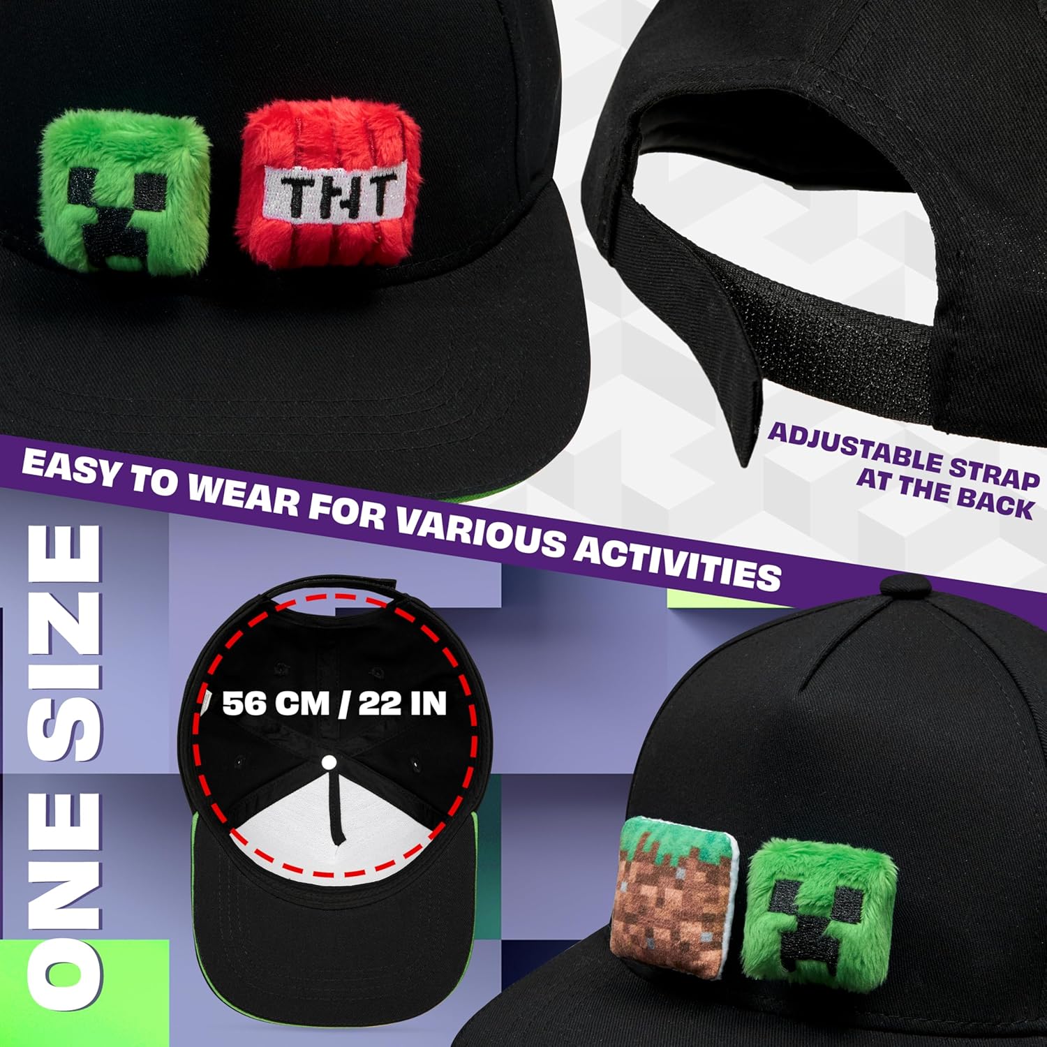 Minecraft Boys Baseball Cap with Removable Plush Accessory – Gamer Gifts