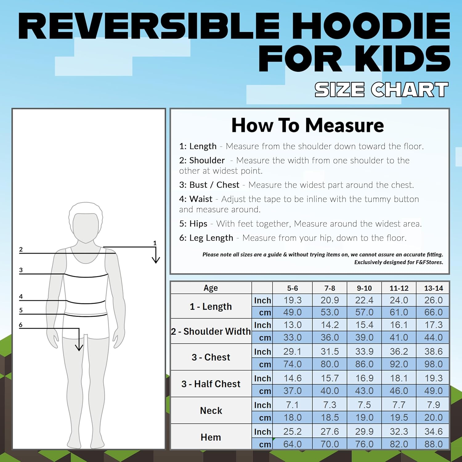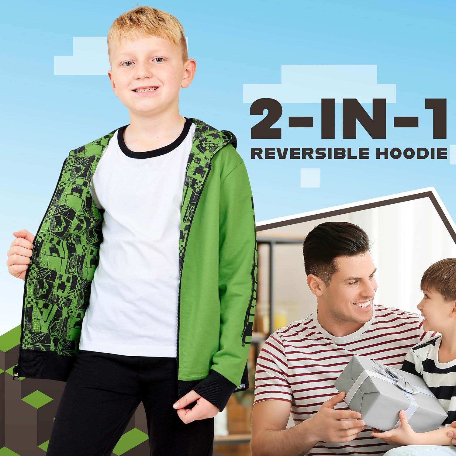Minecraft Boys Hoodies – Reversible Hooded Sweatshirt for Kids Teenagers 5-14 Years Warm Zip up Hoodie Gamers Gifts