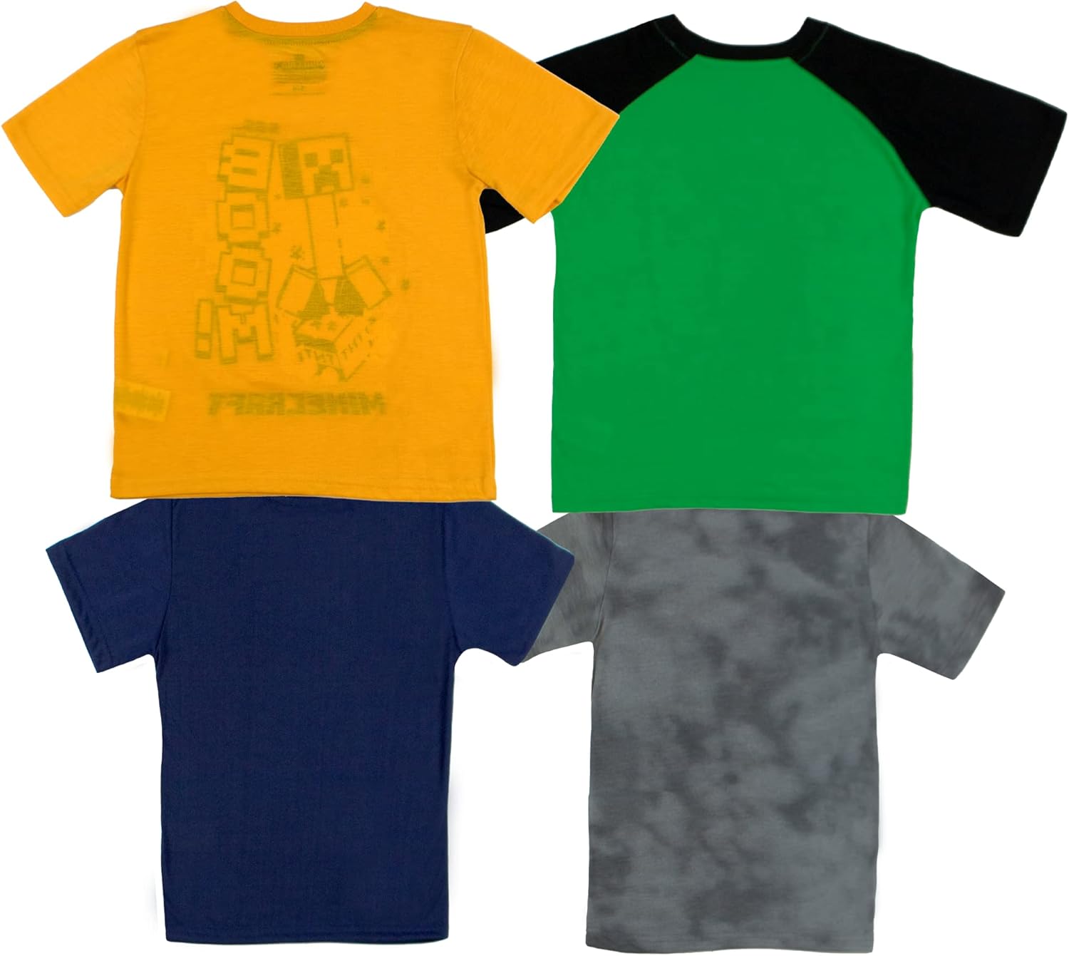 Minecraft Boy’s Short Sleeve T-Shirt 4-Packs – Creeper, Ender Dragon, Skeleton, Zombie Graphic Tee Sets for Kids
