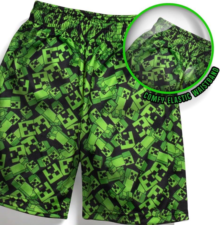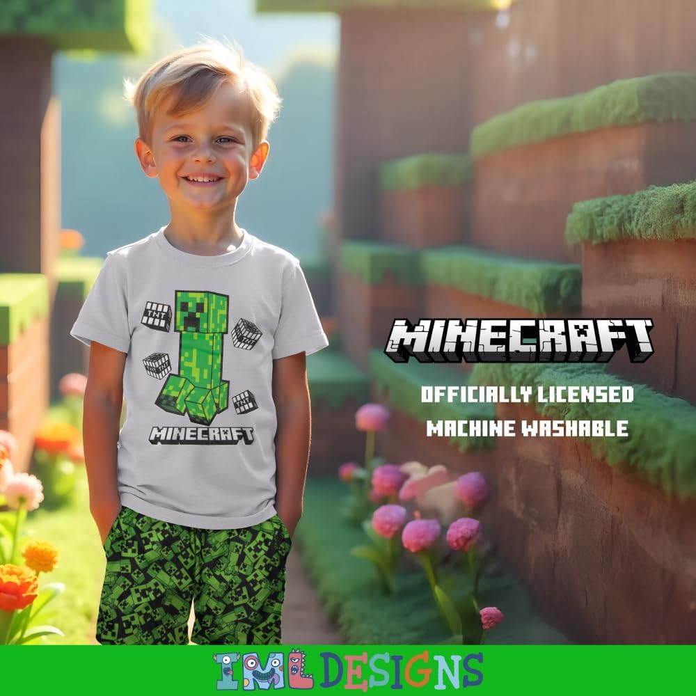 Minecraft Creeper Boys Short Sleeve T-Shirt & Shorts, 2-Piece Gamer Outfit Set for Kids and Toddlers