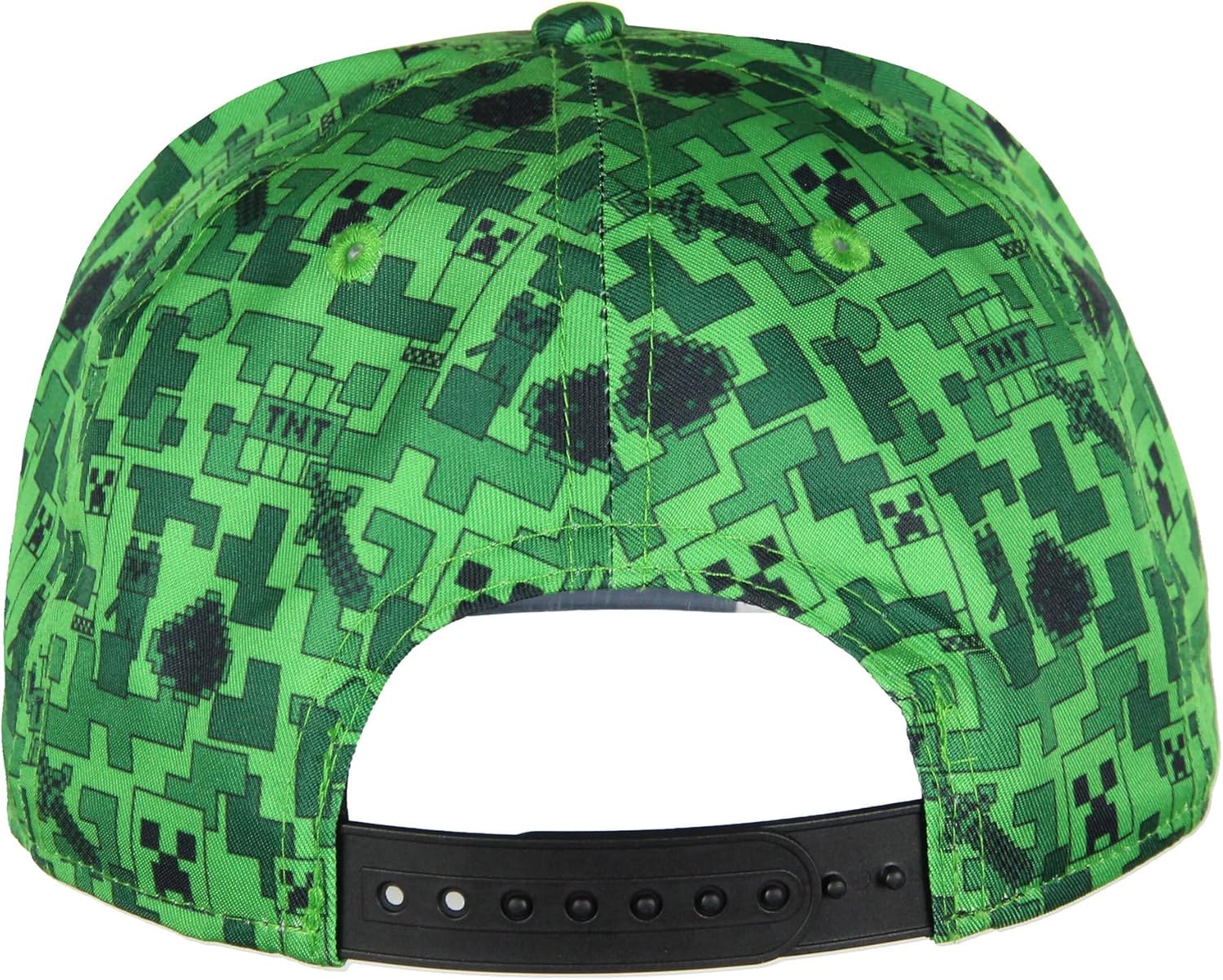Minecraft Creeper Face AOP Youth Flat Bill Snapback OSFM Cap Hat Green
