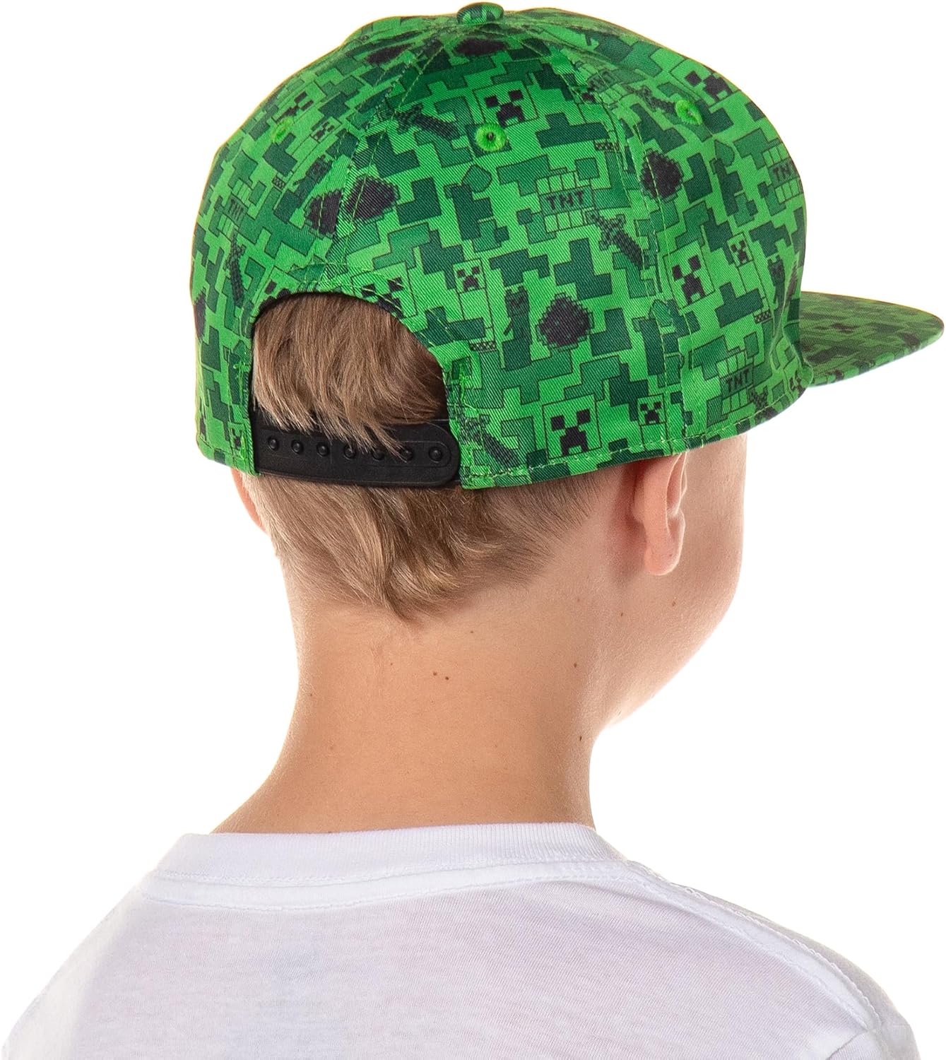 The adventure begins with this Minecraft Creeper Snapback Cap, featuring an action-packed all-over print of Creeper faces, TNT blocks, and swords. The bold “Minecraft” logo above the flat bill adds a standout detail, making this hat a must-have for fans of the game. Whether they’re exploring the Overworld or their neighborhood, this cap is a stylish way to show off their love for Minecraft. the adjustable snapback closure Provides a secure fit, while the lightweight material keeps it easy to wear throughout the day. Whether heading to school, playing outside, or gaming with friends, this cap is a fun and functional accessory that brings the excitement of Minecraft into everyday life.