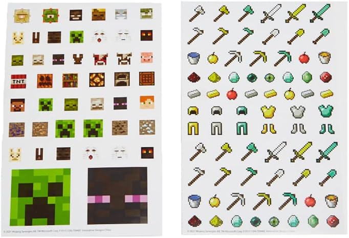 LOTS OF MINECRAFT STICKERS – The set includes 122 Minecraft stickers featuring all their favorite characters. Stick them on water bottles, art projects, notebooks, cards, backpacks, or binders.