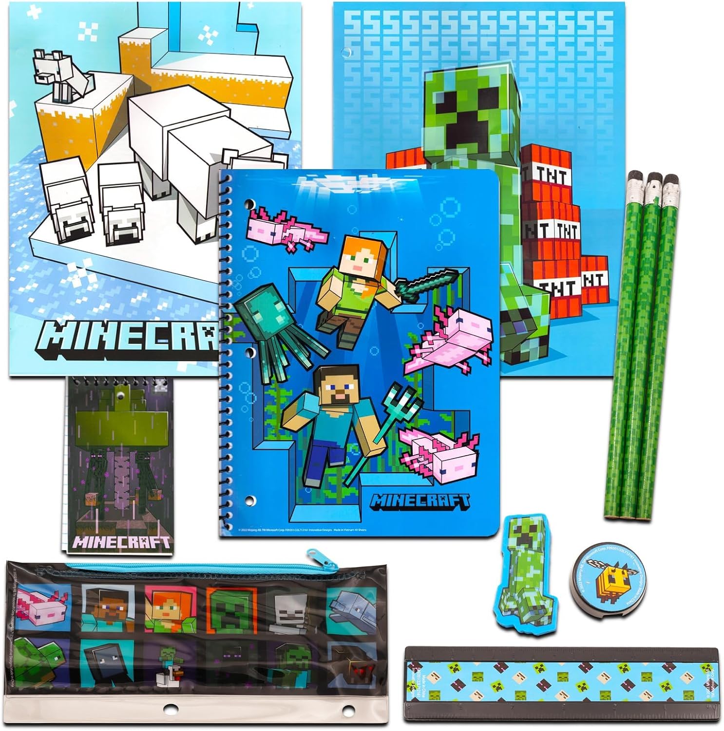 Minecraft Kids School Supplies Set with Pencil Case, Notebook, Pencils, Folders – 11 Pc. Set