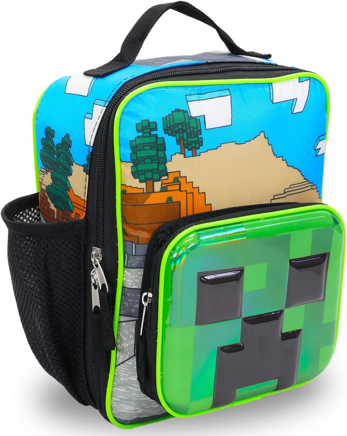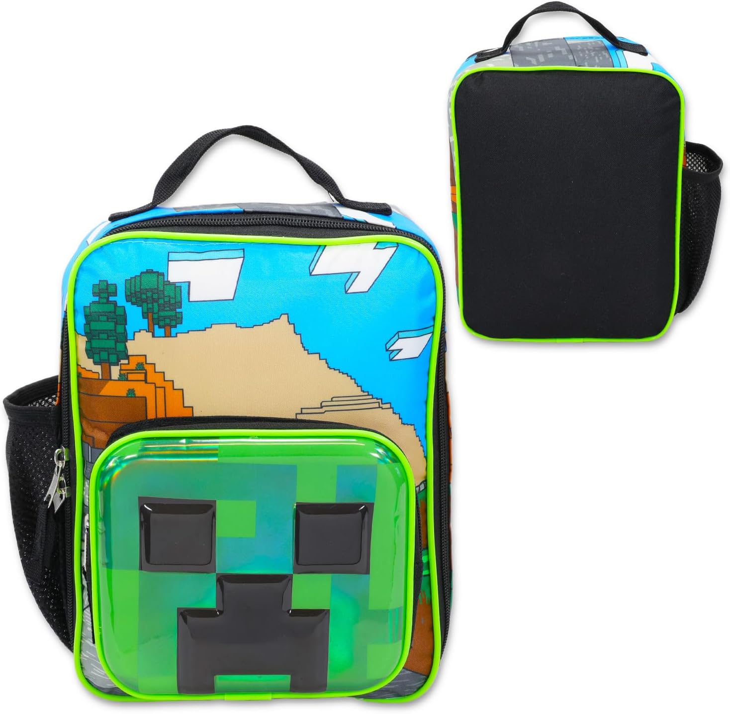 Minecraft Lunch Box Set – Bundle with Minecraft Lunch Bag for Boys Plus Water Bottle, Stickers, More | Minecraft Lunchbox for Kids, Boys. This Minecraft school supplies set comes with 1 insulated Minecraft lunch box with a top handle and awesome Minecraft design. This lunch box set also comes with 1 Beach Kids water bottle. BPA free. Lunch box measures approximately 9 inch x 3 inch x 8 inch. Perfect for keeping your food warm or cold all day long, the Minecraft lunch bag fits in seamlessly with any other Minecraft school stuff or travel sets. The Minecraft lunchbox bundle also comes with Rex-Man stickers. The perfect pairing with the Minecraft lunch bag and any other school supplies. Officially licensed Minecraft lunch bag set. The Minecraft lunch box bundle also comes with a bonus Rex-Man door hanger!