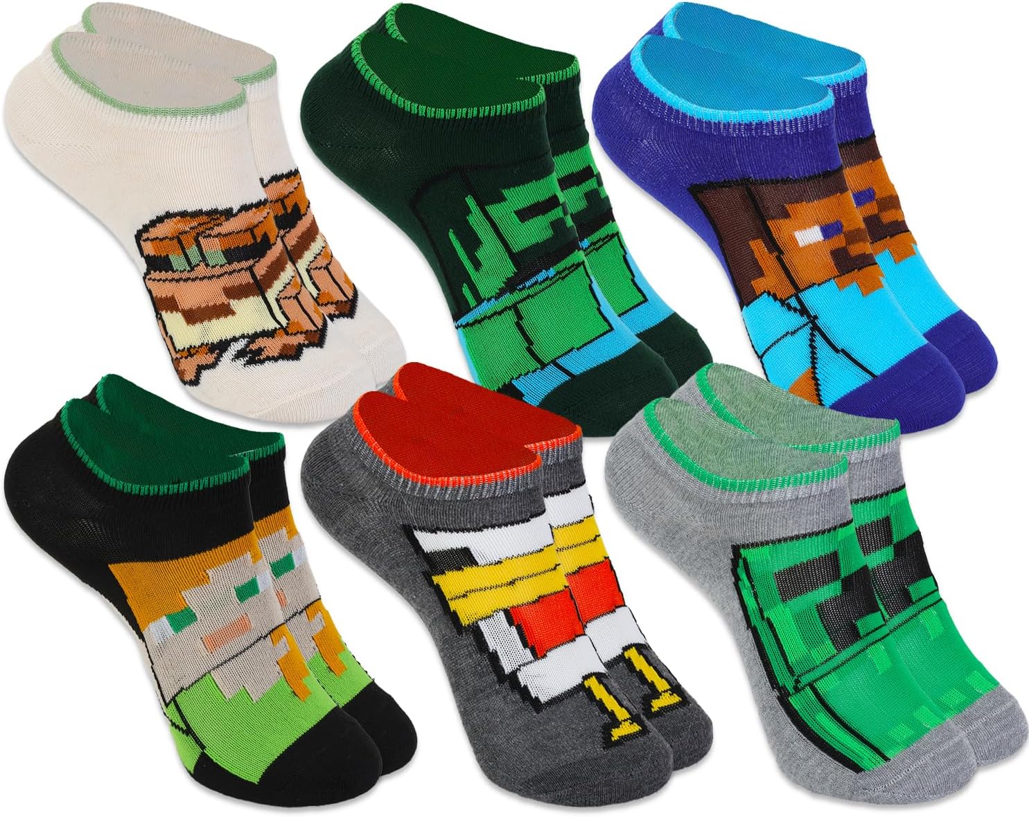 Minecraft Socks Set for Kids – Apparel Bundle With 6 Pairs of Socks for Boys Size 4.5-8.5 Plus Stickers | Gift Set