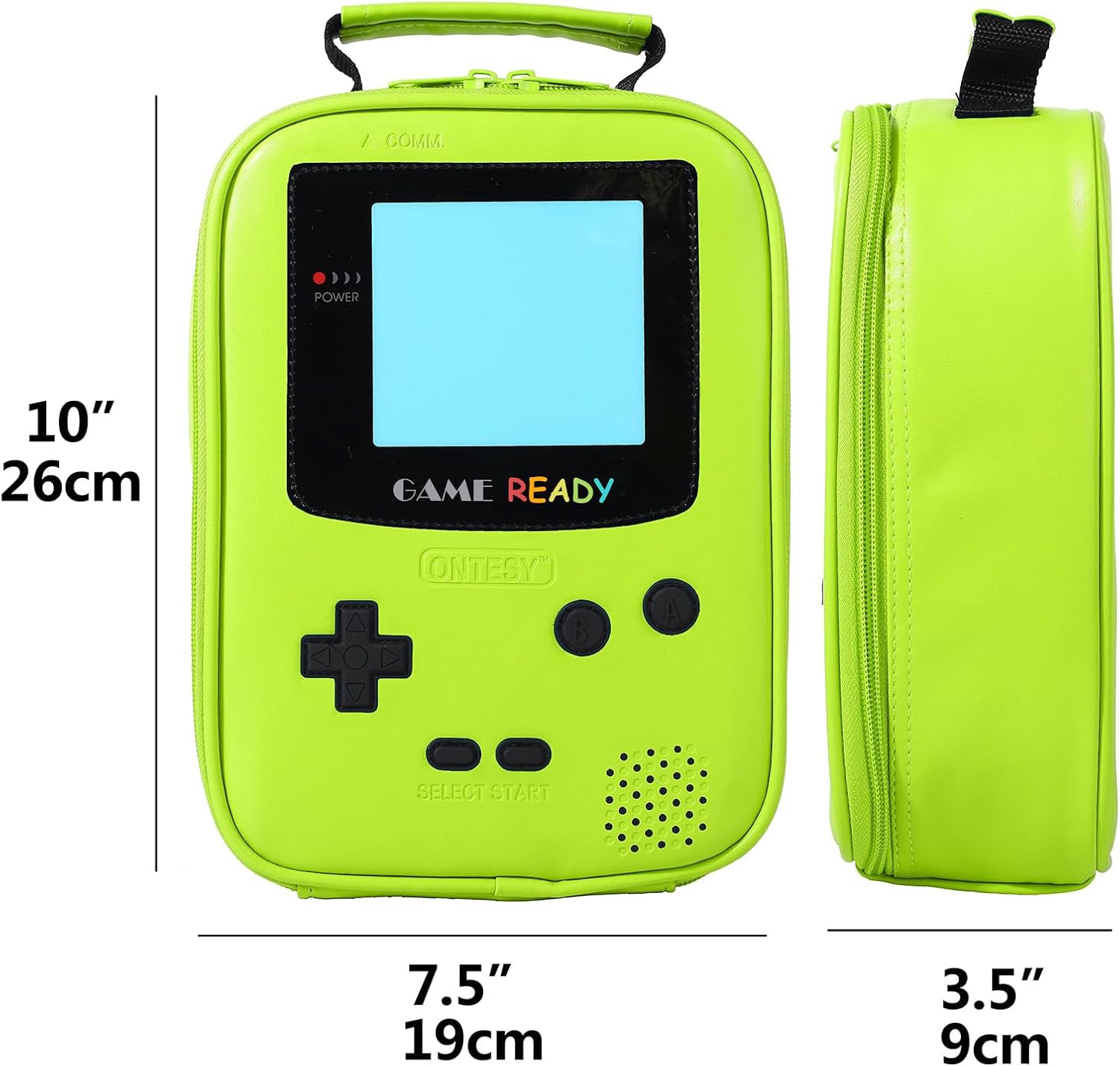 ONTESY Game Lunch Box Leather Reusable Lunch Bag Waterproof Thermal Insulated Mini Cooler for Boys Girls Kids Toddlers Teens for Picnic School Daycare (Green)