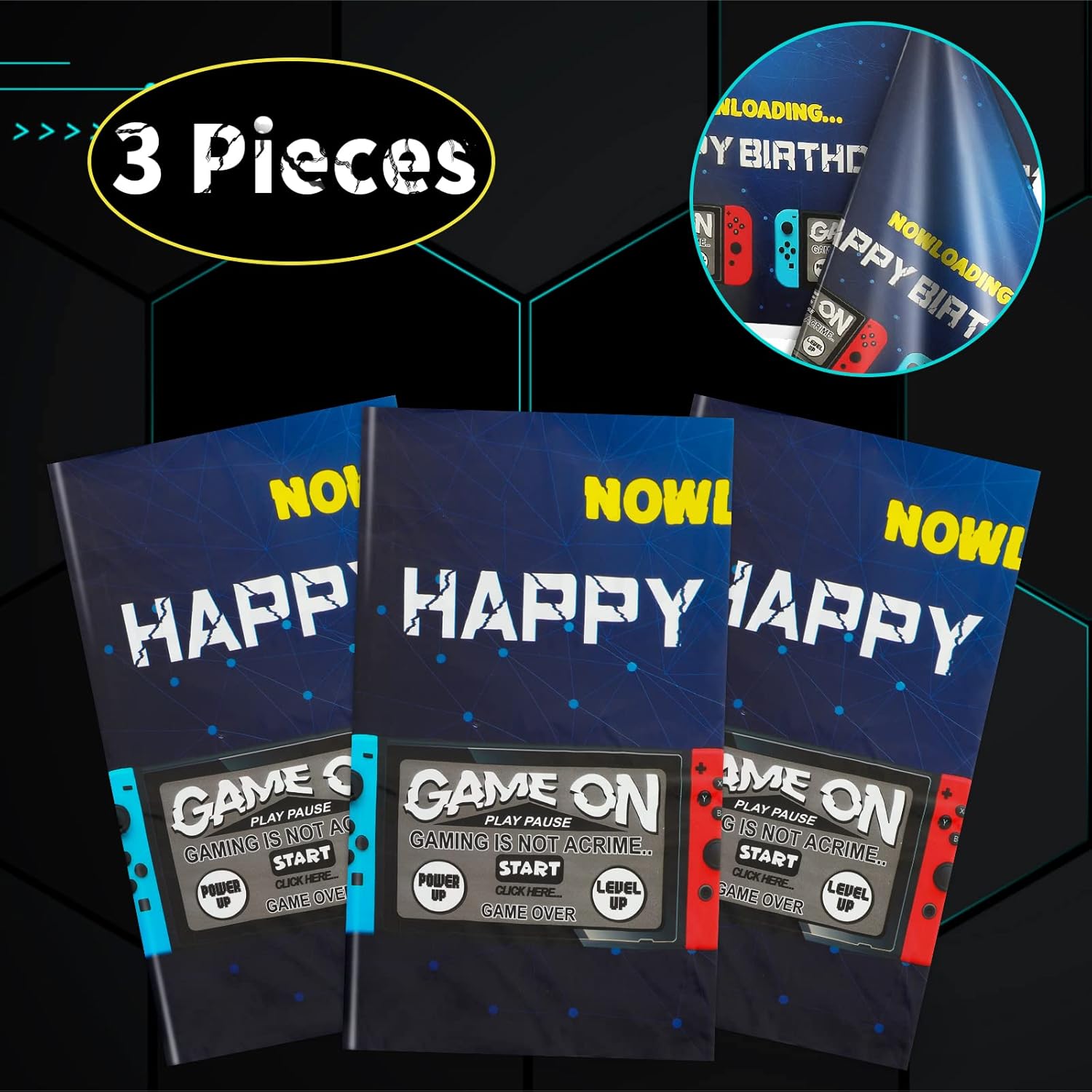 PHOGARY 3 Pack Video Game Tablecloth, Blue Gamer Birthday Decorations Disposable Plastic Rectangle Tablecloths for Kids Player Gamer Party Supplies 51″ X 87″