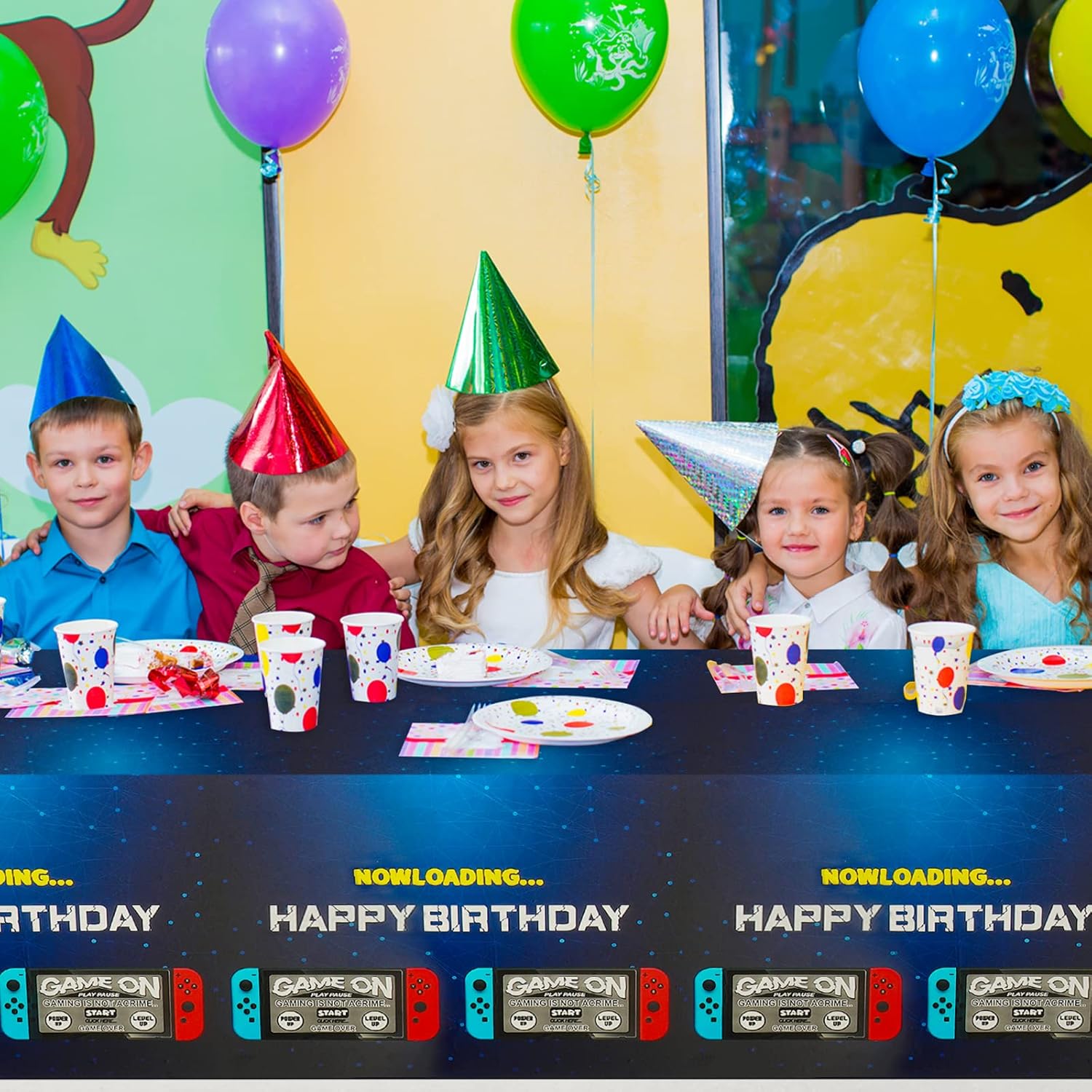 EASY CLEAN UP: The gamer birthday decorations table cover are suitable for one-time use and are easy to clean up. You can roll it up and dispose of it after the party, saving you cleaning time, so you can enjoy more time with family and friends. If you want to use it for your next party, you can wipe off food residues or water stains.