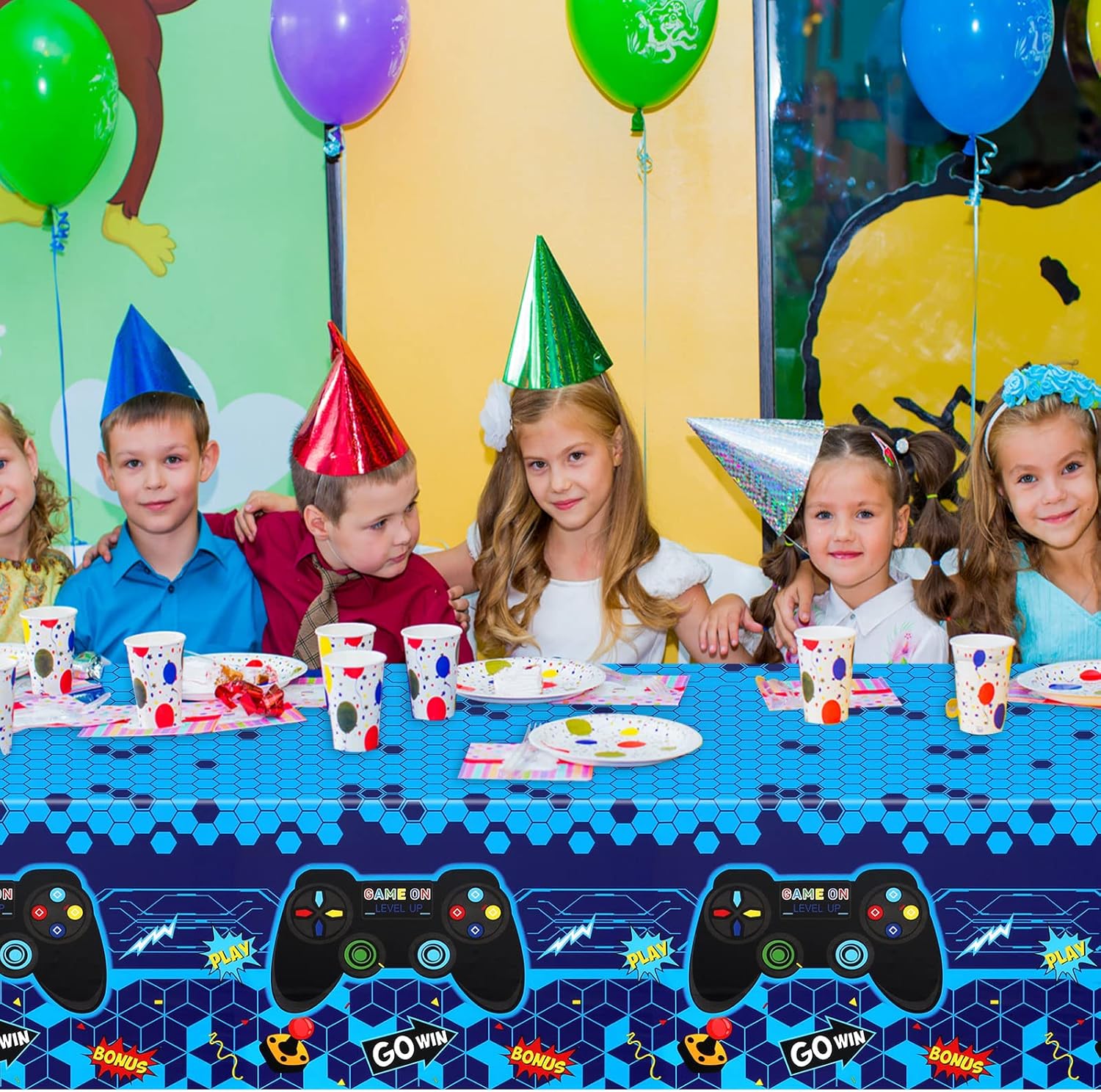 Save Your Time-These game theme tablecloths are spill-proof and stain resistant, great at picking up any messy spills from food, drinks, paint from arts and crafts sessions and more! they are completely disposable so simply roll up the tablecloth after an event and dispose it off!
