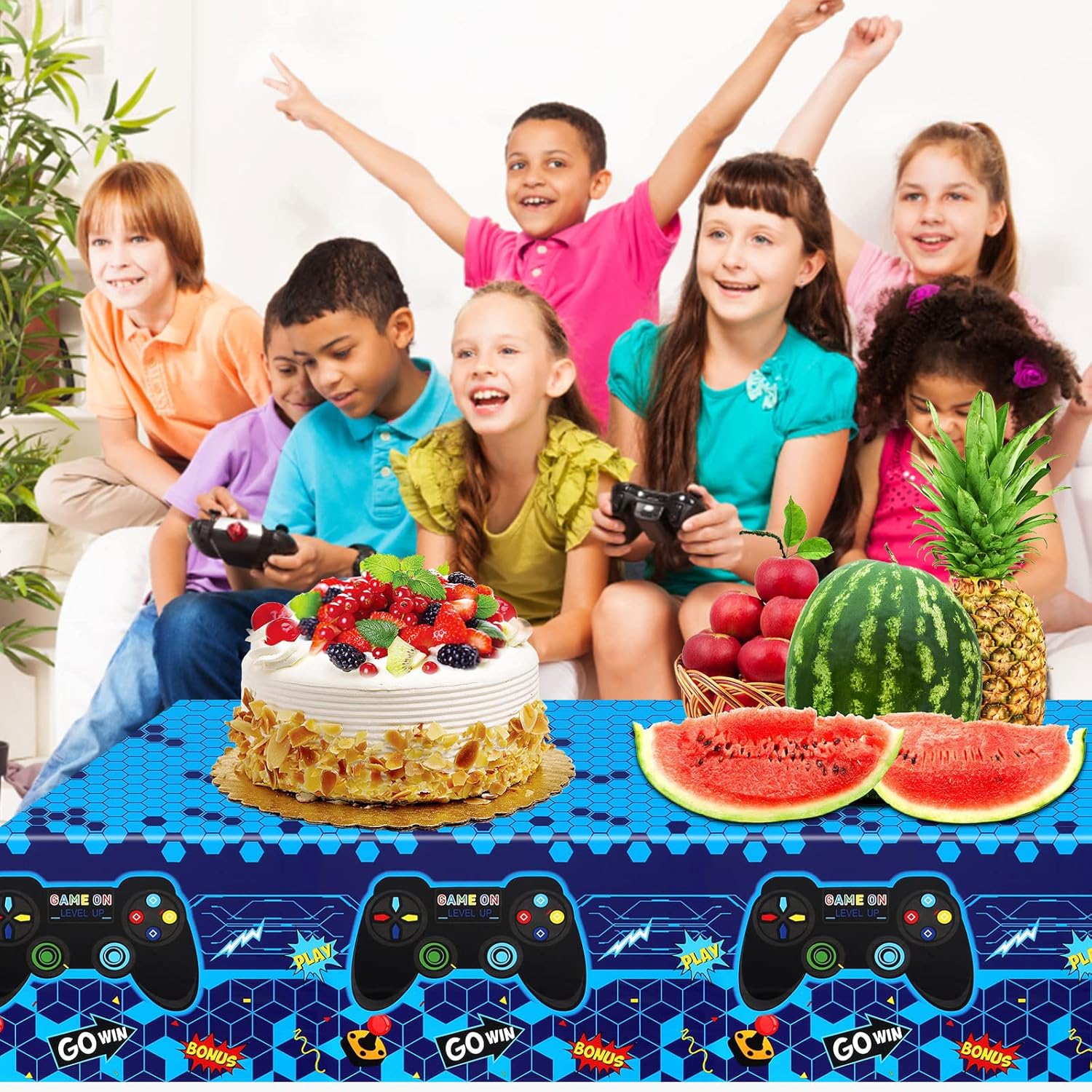 PHOGARY 3 Pack Video Game Tablecloth Blue Video Game Table Cover Geek Theme Birthday Party Decorations Supplies for Kids Player, 108 x 54 Inches