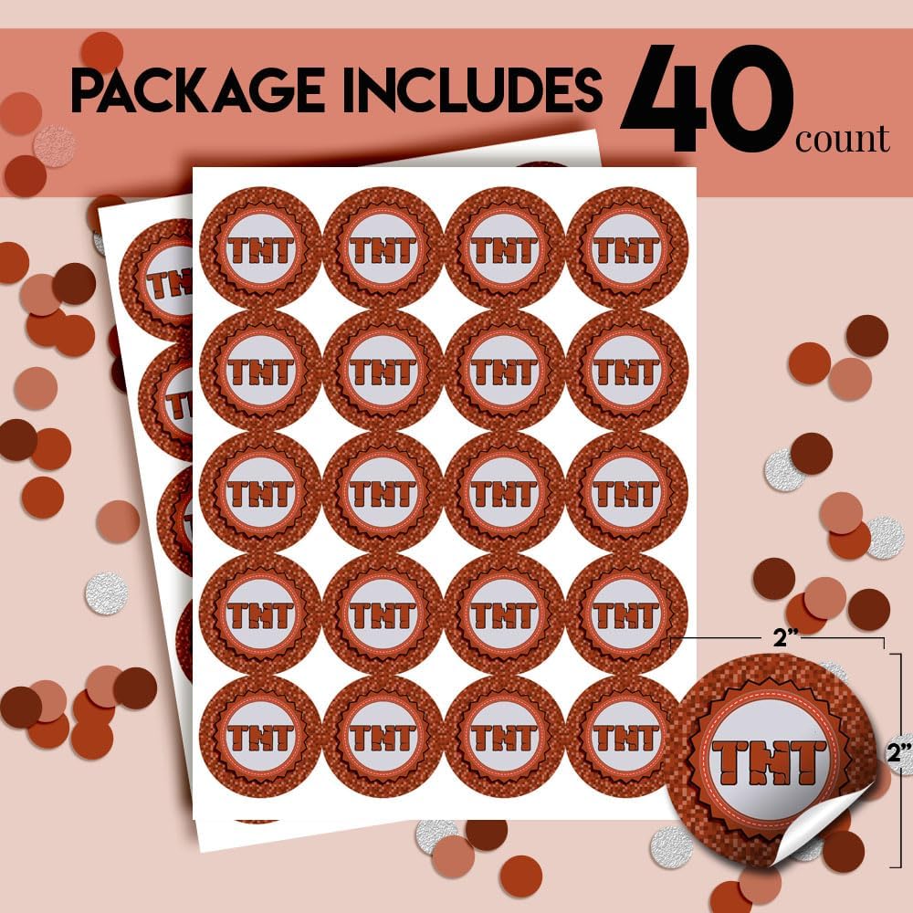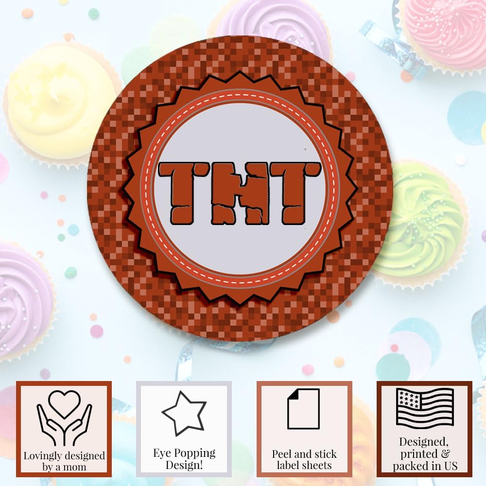 Pixel Miner TNT Themed Thank You Sticker Labels for Kids, 40 2″ Party Circle Stickers by AmandaCreation, Great for Party Favors, Envelope Seals & Goodie Bags