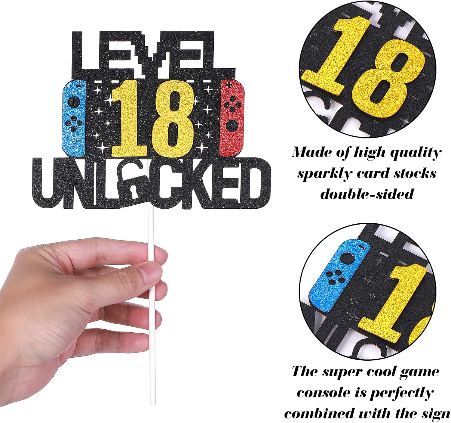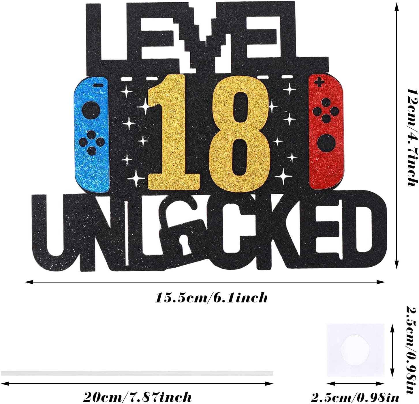 Prasacco Level Unlocked Birthday Cake Topper DIY Level Up Happy Birthday Cake Topper Video Gaming Themed Party Decorations for Kids Boys Girls Gamer