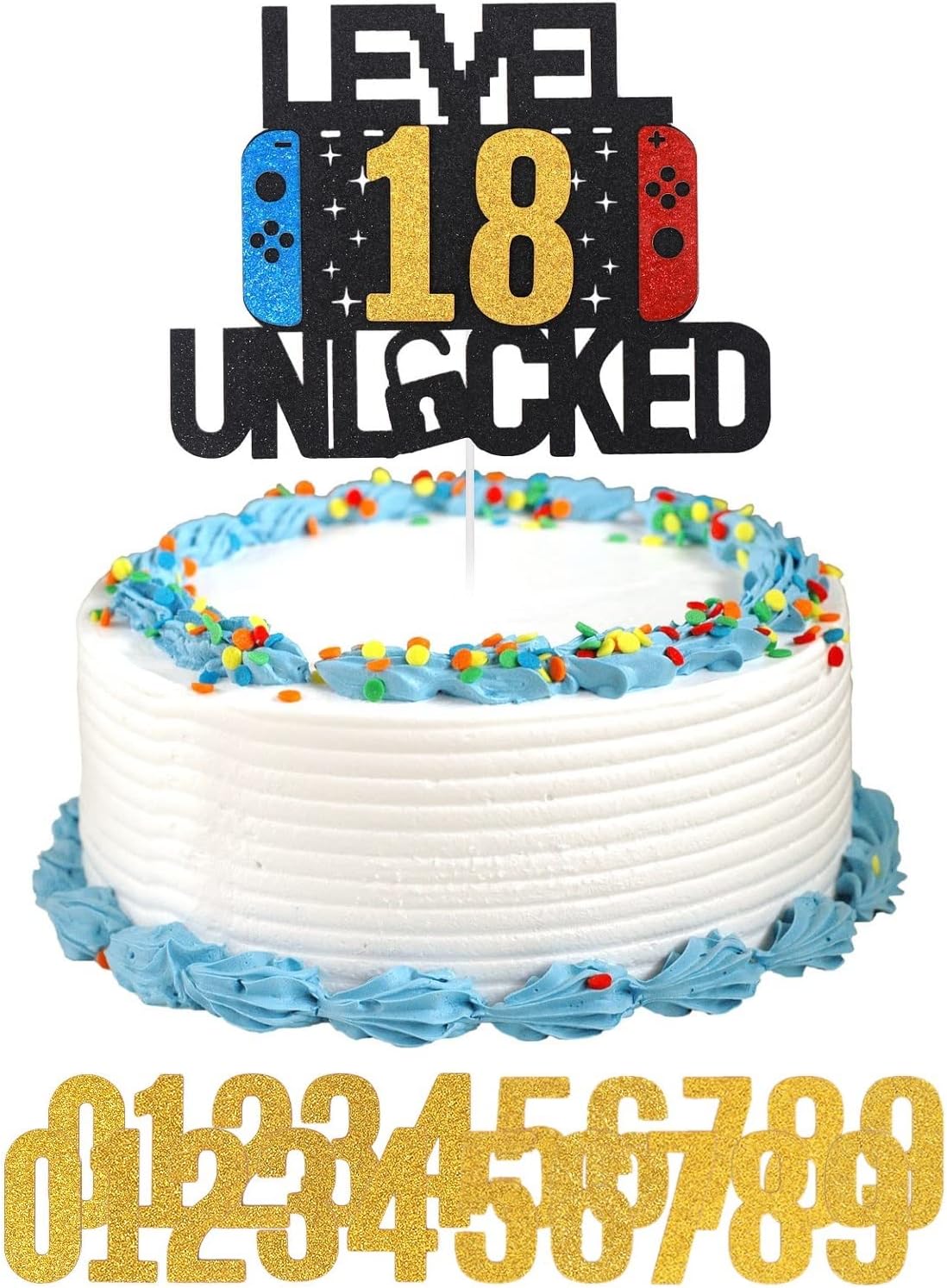 Prasacco Level Unlocked Birthday Cake Topper DIY Level Up Happy Birthday Cake Topper Video Gaming Themed Party Decorations for Kids Boys Girls Gamer