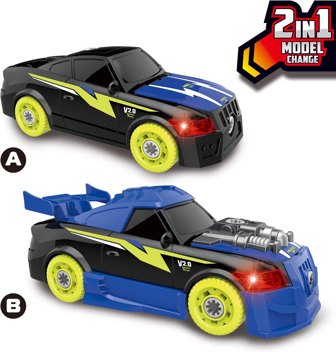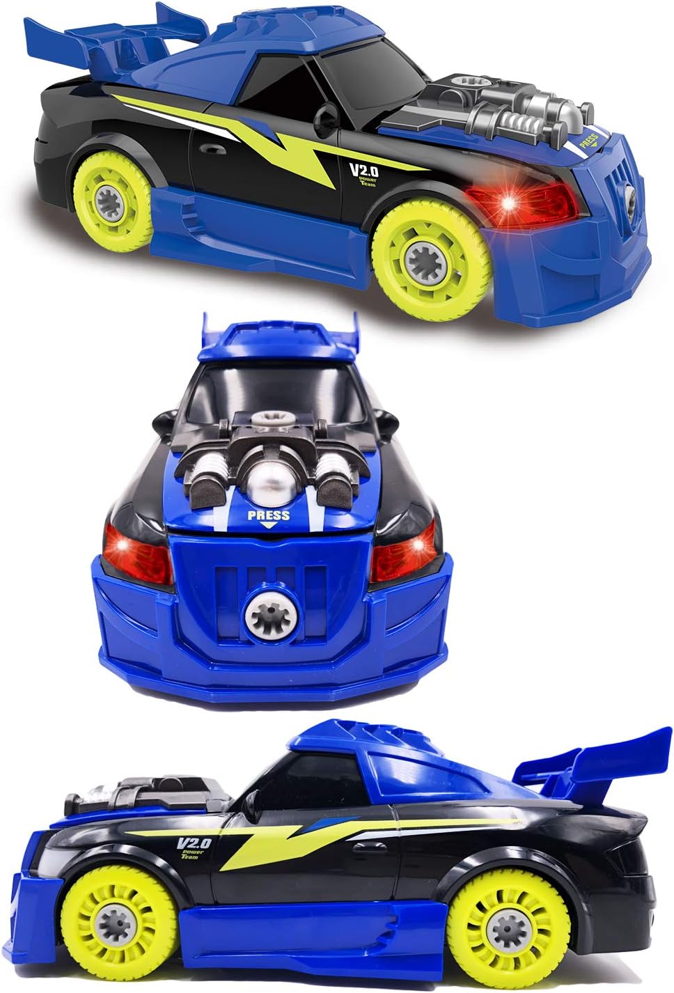It will give off realistic sounds and lights when simply press the bonnet. Electronic drill is powered by batteries, electronic toy drill is just like the real thing. Completely take apart car pieces and put it back together with power drill. This car will become his favorite toy
