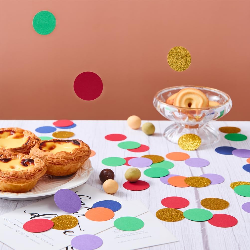 Confetti Rainbow Gold Red Orange Green Blue Purple 200 counts dots confetti,each dots 1.2” in diameter,high quality craft paper confetti