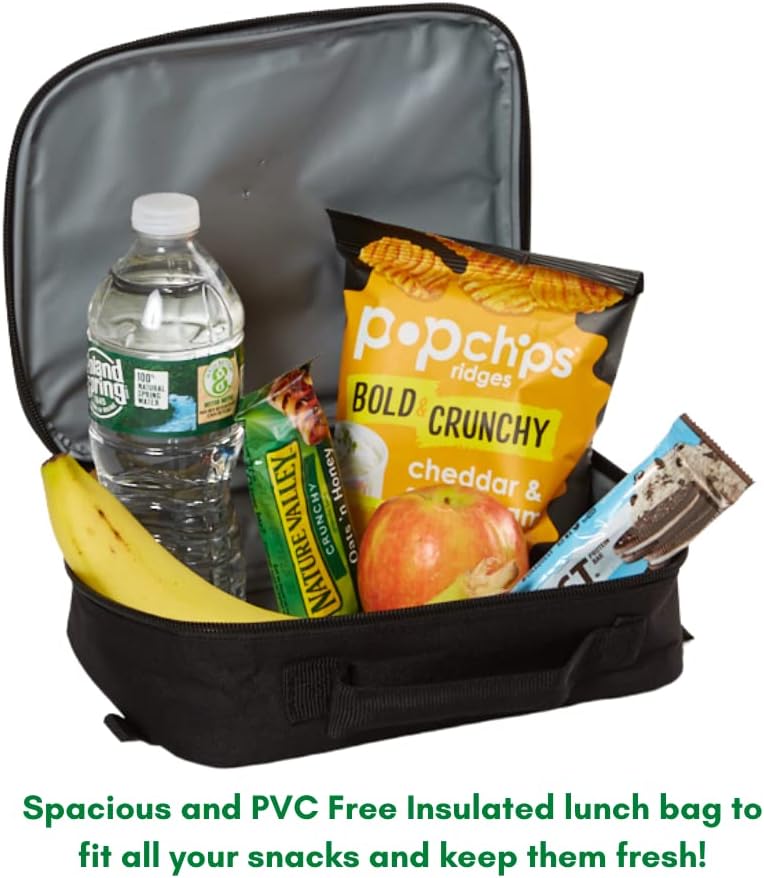 The complete set includes a 16 inch Minecraft backpack (12.5 x 4 x 16 in.) with a mesh side pocket and a soft Minecraft lunchbox. The roomy main compartment fits folders, binders, & notebooks. The elasticized black mesh side pocket holds water bottle. The included lunchbox can be attached to the front of the backpack with side velcro tabs for hands free travel to and from school. Durable enough to last the school year & with straps that adjust as kids grow, this cute backpack set makes a great gift for kids who love the Minecraft video game. Make going back to school more fun with the familiar comfort of their favorite characters!