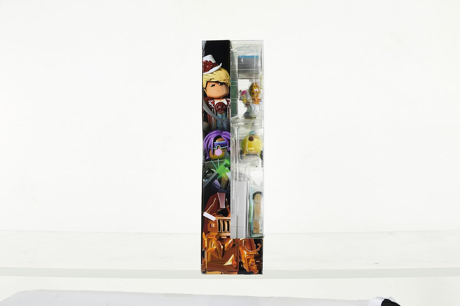 Relive your favourite Roblox adventures or create your own with this unique playset, featuring three iconic characters and loads of accessories