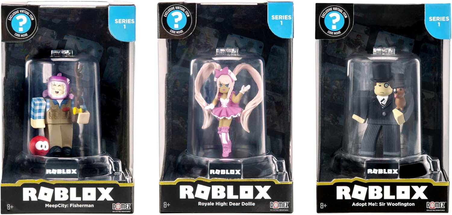 Roblox Action Collection – 15th Anniversary Domez Collectible Royale High: Dear Dollie, MeepCity: Fisherman, Adopt Me!: Sir Woofington 3-Pack [Includes 3 Exclusive Virtual Items]