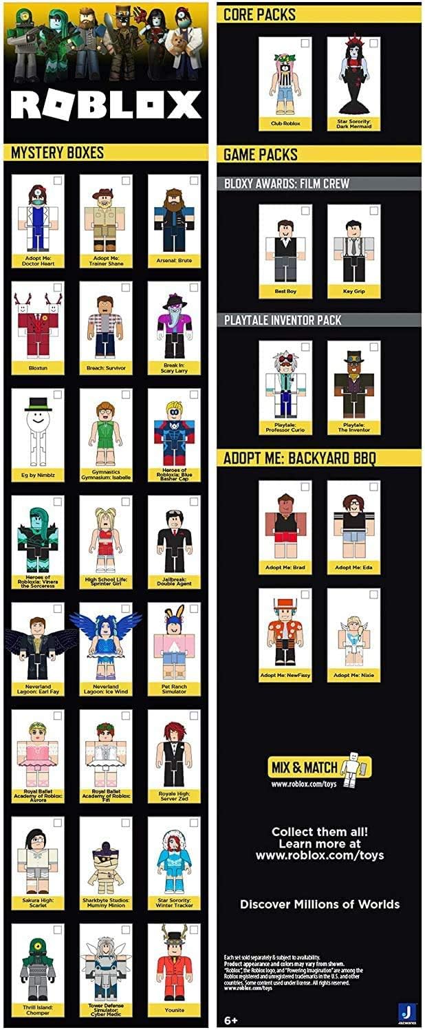 Trexa the Dark Princess: They don’t call Trexa the “dark princess” for nothing. You thought pink was all the rage at Star Sorority? Think again. This gothic princess is ready to take Asprince Imports Inc.’s hit fashion game (and Roblox!) by storm. She doesn’t mind that her sisters prefer wearing bright, pastel colors—just don’t be the one to recommend she wear anything but black. Mystery Figures: Assemble the ultimate Roblox toy collection with these iconic characters from your favorite games! There are 24 new figures from Series 8 and 24 new figures from Celebrity Collection Series 6 which will be picked at random. Each mystery figure comes with a code for an exclusive virtual item that can be redeemed on Roblox. Collect them all!