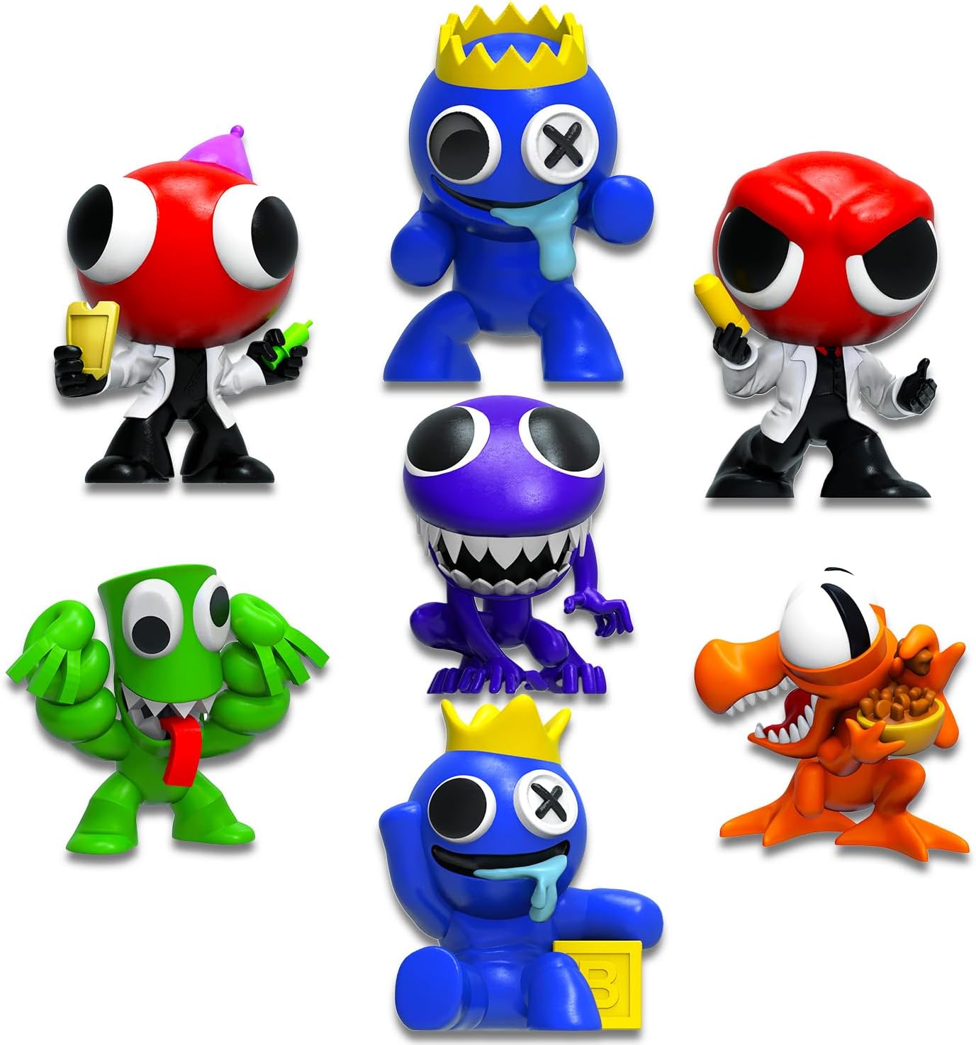 Officially licensed Rainbow Friends collectible mini figures for kids of all ages, boys and girls alike, also comes with bonus video game stickers and Rex-Man door hanger.