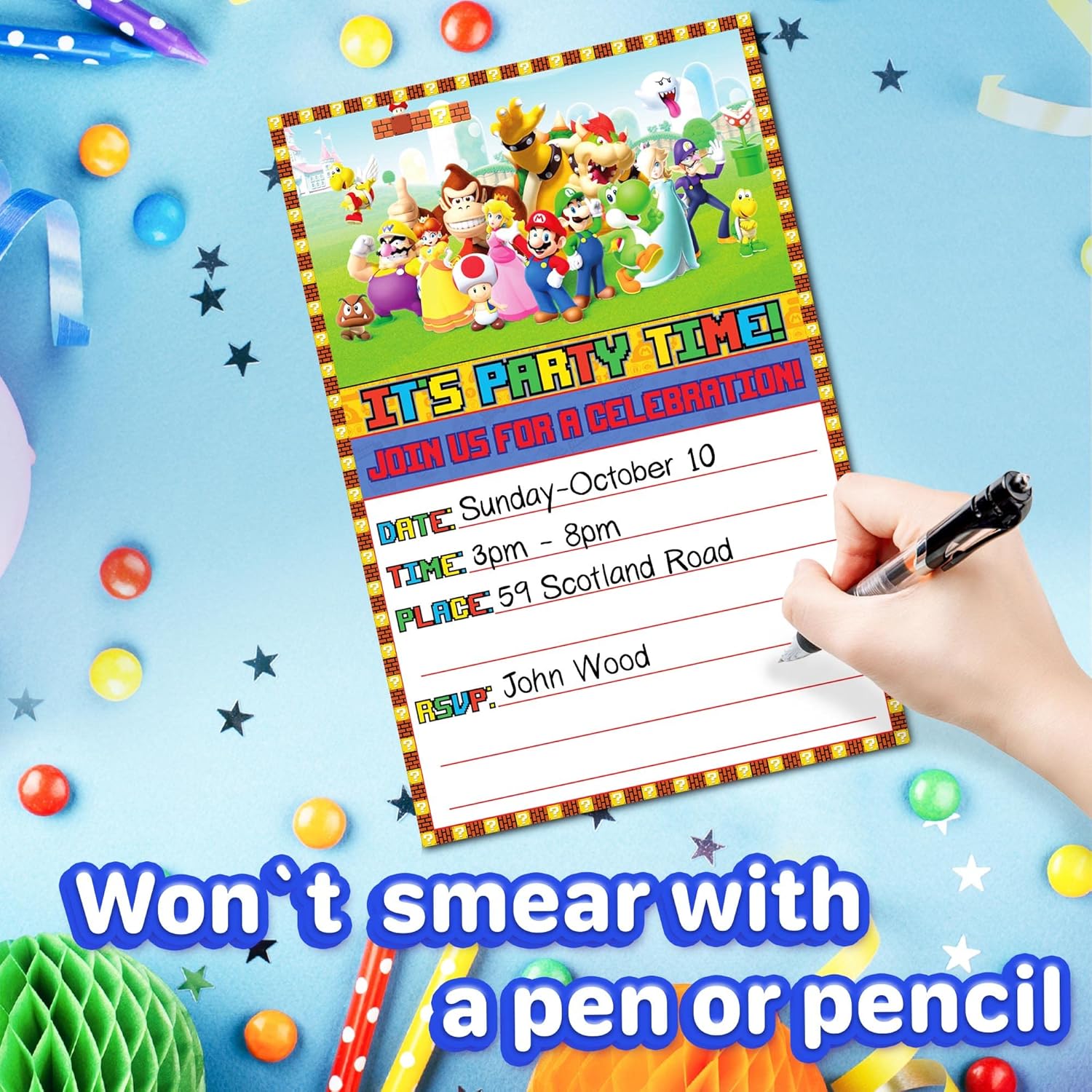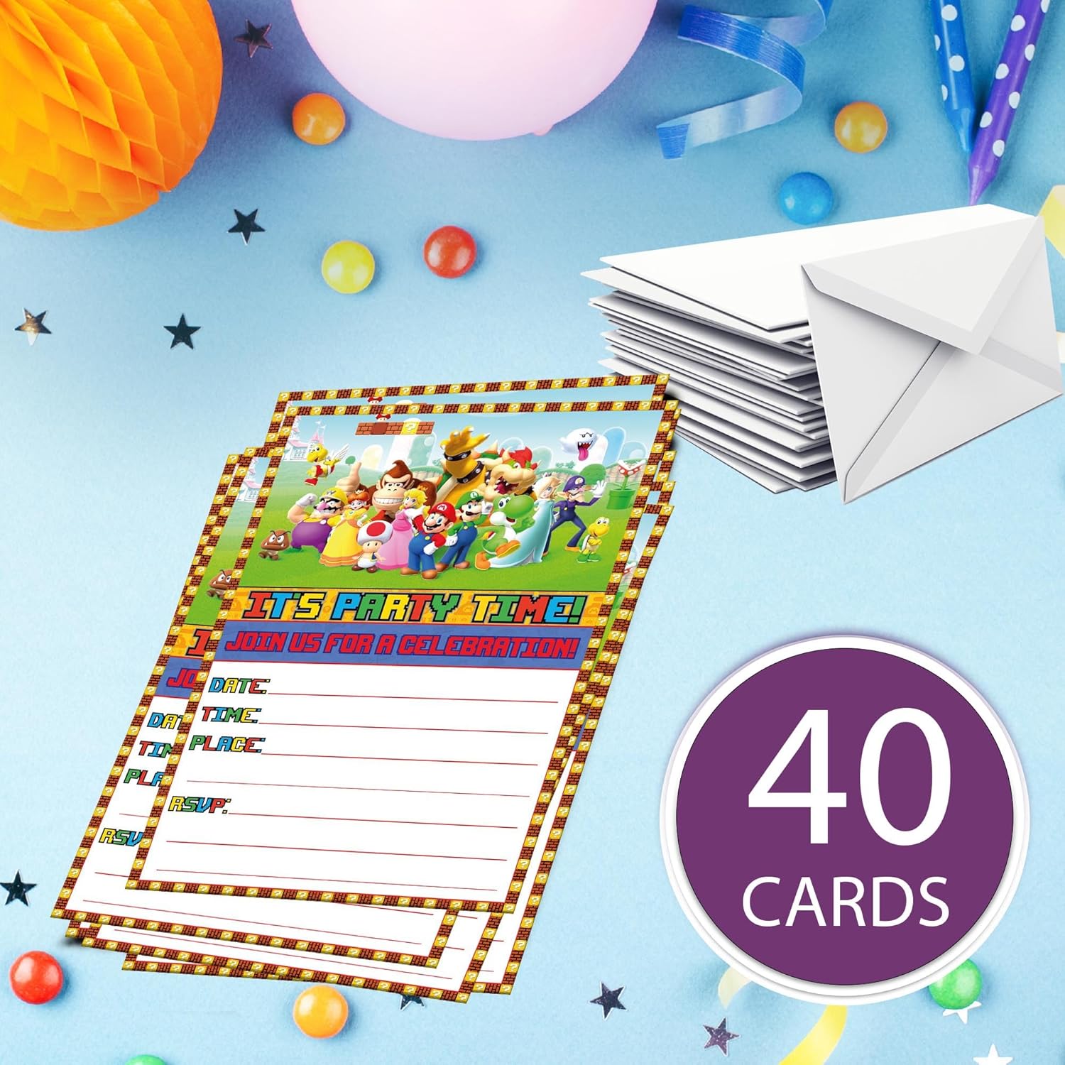 Set of 40 Invitation Cards Classic Video Game -Themed Happy Birthday Invitation Cards – Lightweight (230g), Postcard Style Invites for the Perfect Party Pack