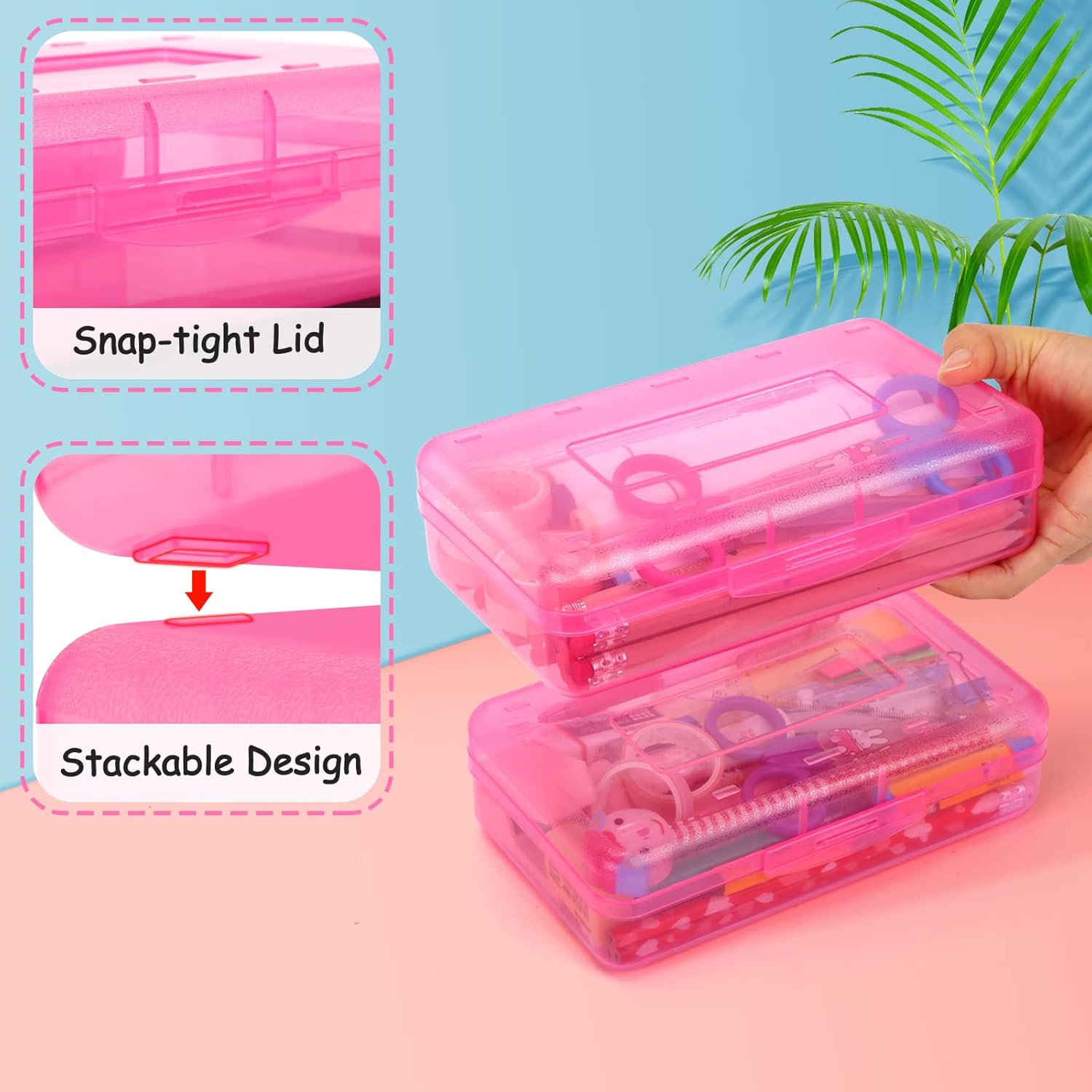 See-through design & firmly sealed lid Transparent construction keeps contents visible without opening the pencil box. The well-made lip keeps your supplies securely contained, which is easy for kids to open and close.