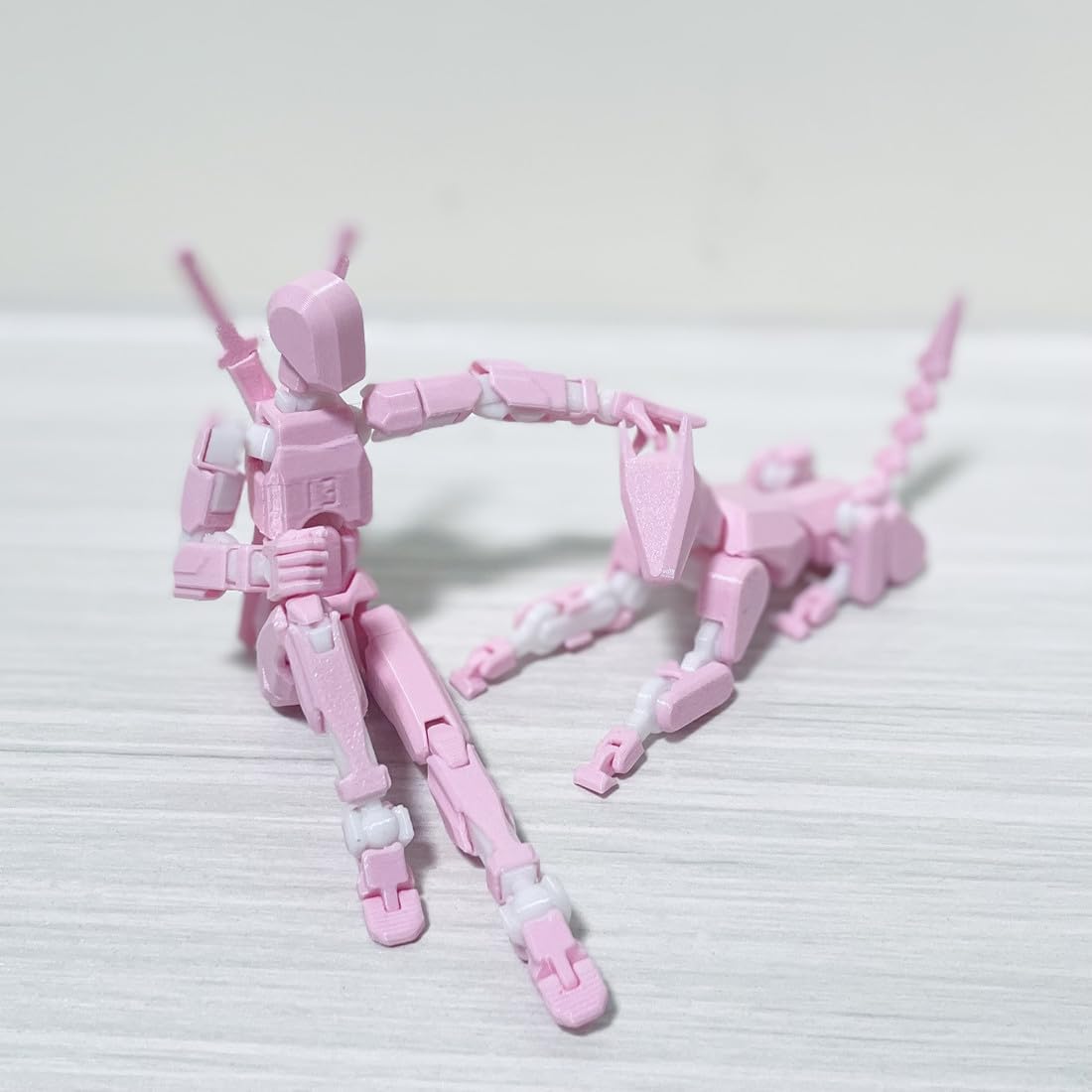 T13 Action Figures Set (Assembly Completed) Dummy 13 Titan 13 Robot Action Figure 3D Printed Robo Multi-Jointed Movable Action Figure Toy with Full Articulation (T 13 Pink White Figure + Dog)