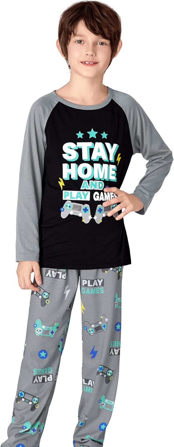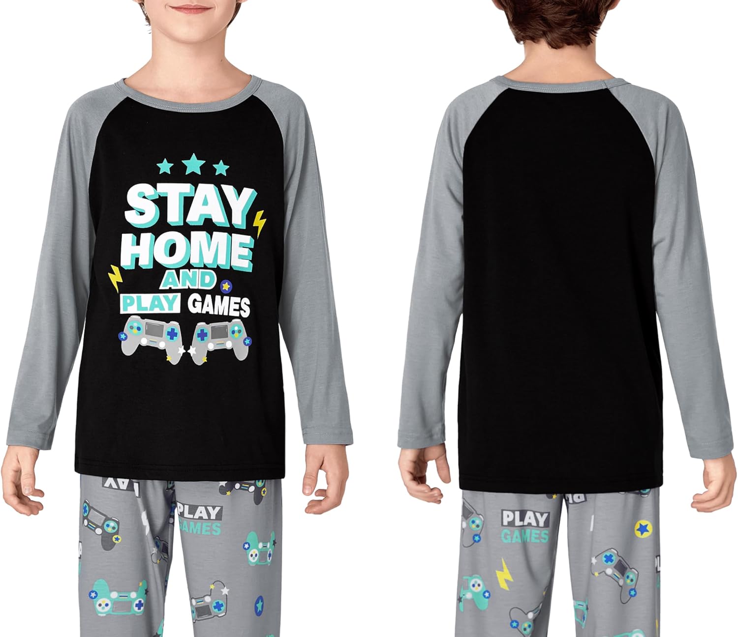 Tebbis 2-Piece Cozy Pajamas For Little/Big Trendy Boys Black Skateboarding Long Sleeves Soft PJs Set Kid Size 6-18