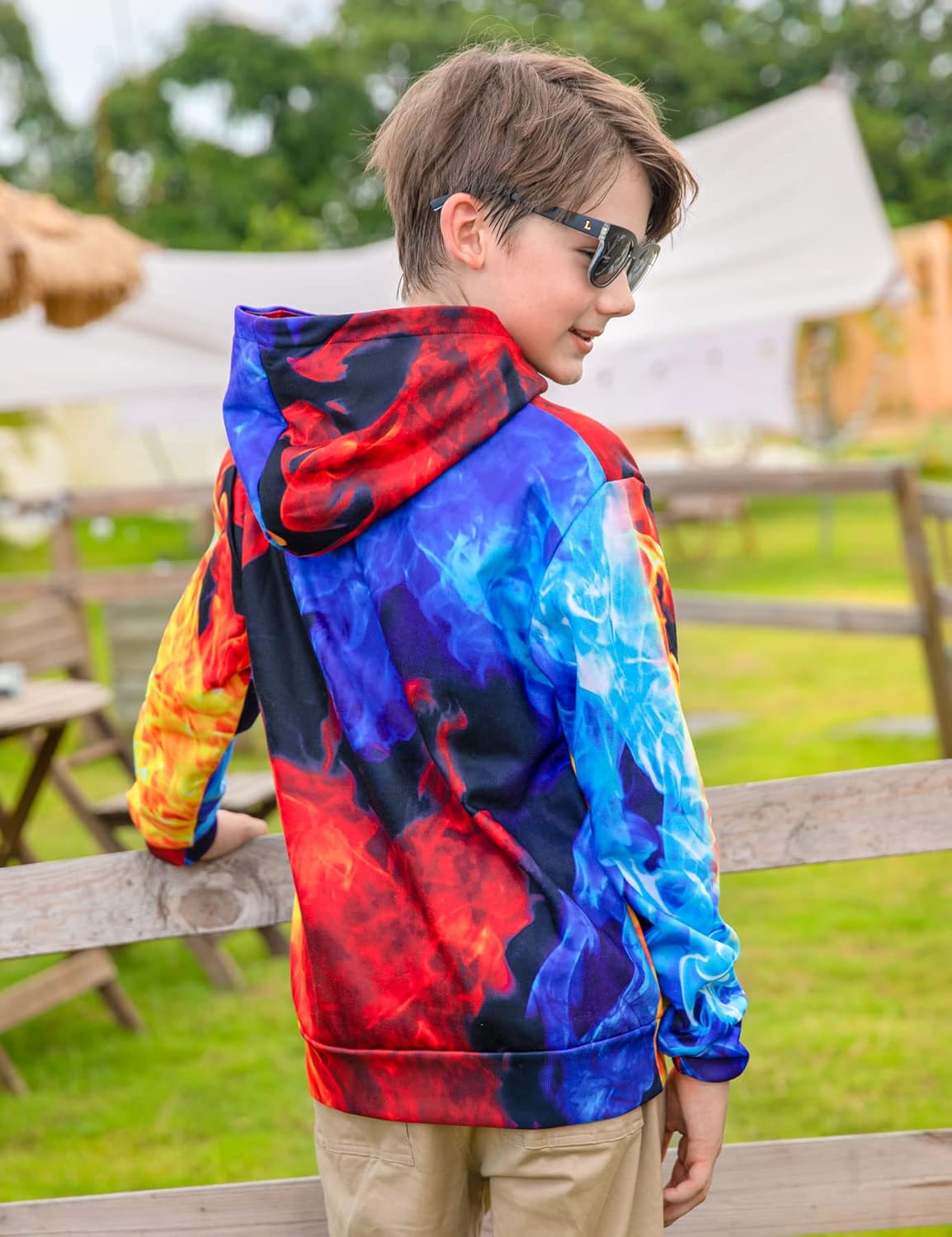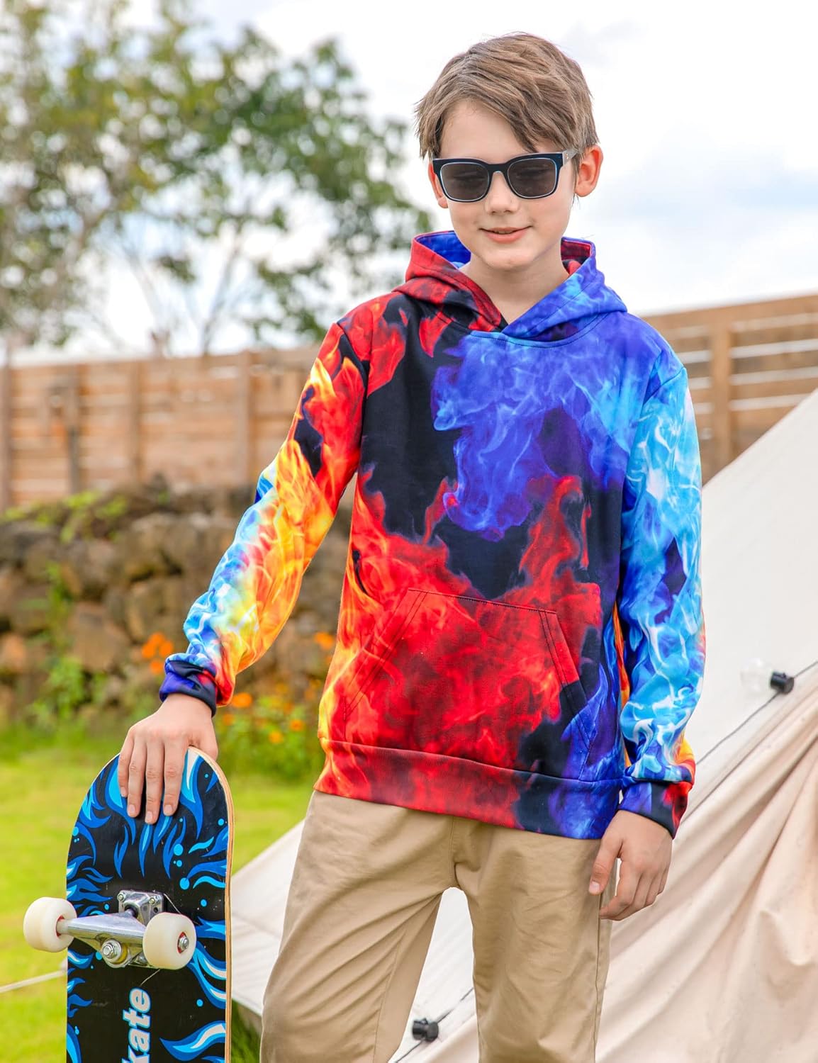 boys blue fire pattern hoodies