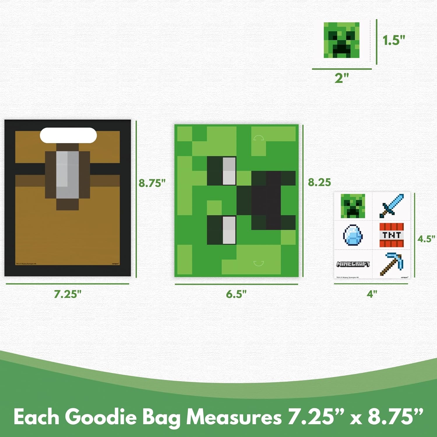 Unique Minecraft Party Favors – 16 Guests – Bundle with Goodie Bags, Tattoos, Favors, Checklist – Minecraft Birthday Decorations