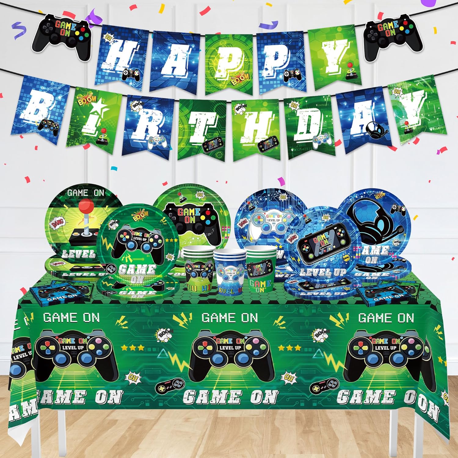 Video Game Birthday Decorations Tableware Set, Birthday Party Decorations Game on Theme Party Supplies for Boys