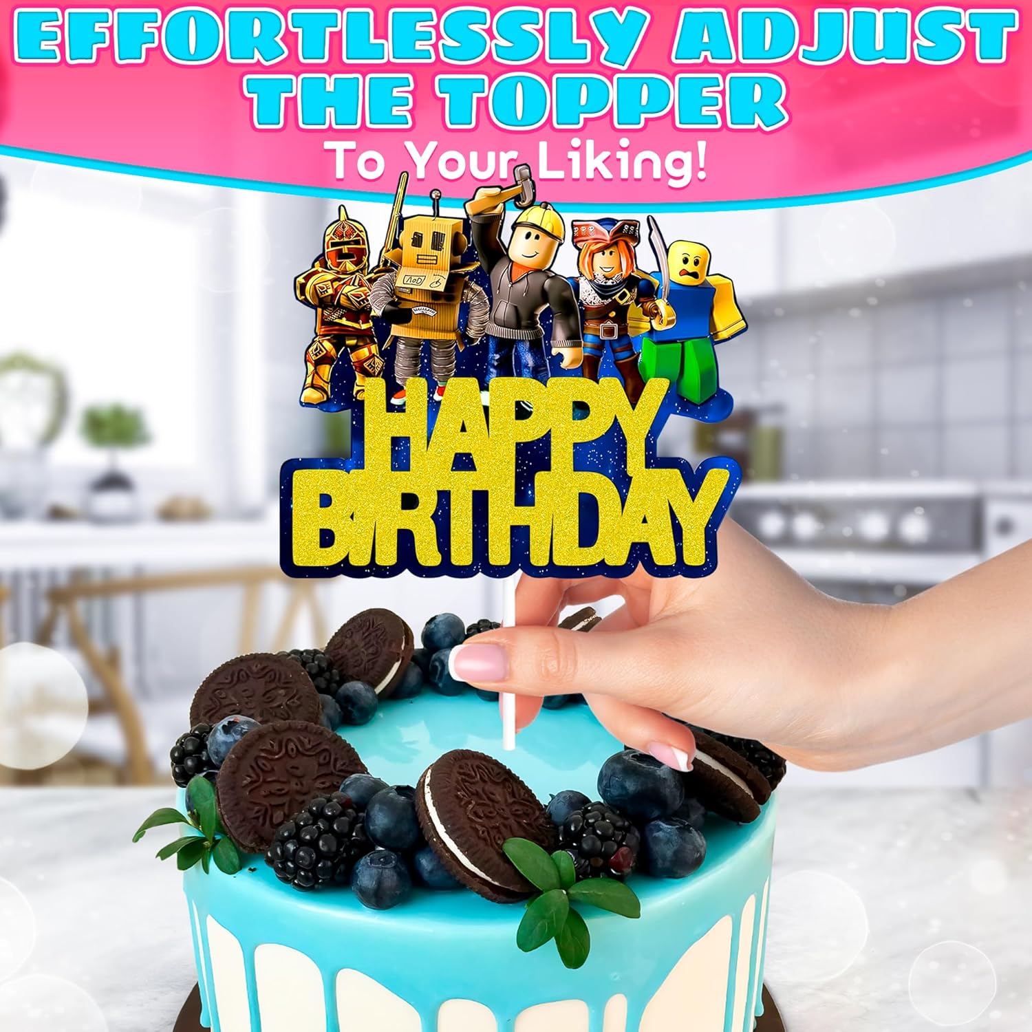 Ready-to-Use Robot Birthday Party Decorations: Pre-assembled and lightweight, these video game cake decorations are easy to install and adjust with a convenient plastic stick—no DIY needed cake decor