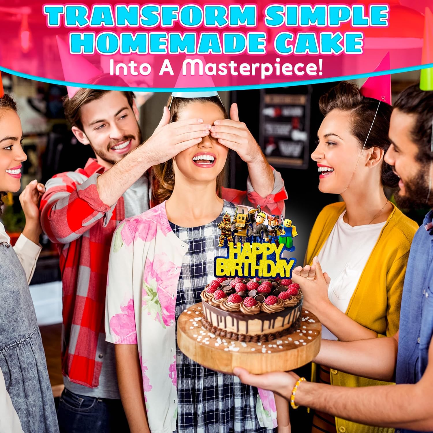 Sizes of Gaming Cake Topper: The width of boy birthday party decorations is 5.9” and the height is 5.1”. Big or small, our robot blocks-themed topper will give a unique appearance to any cake