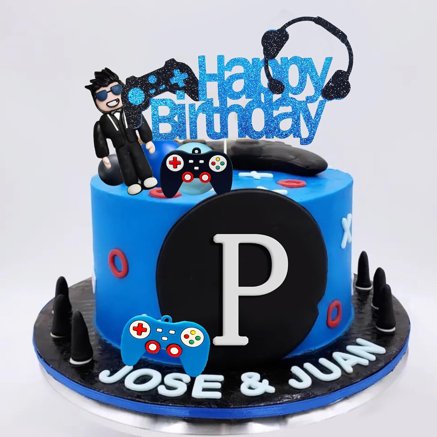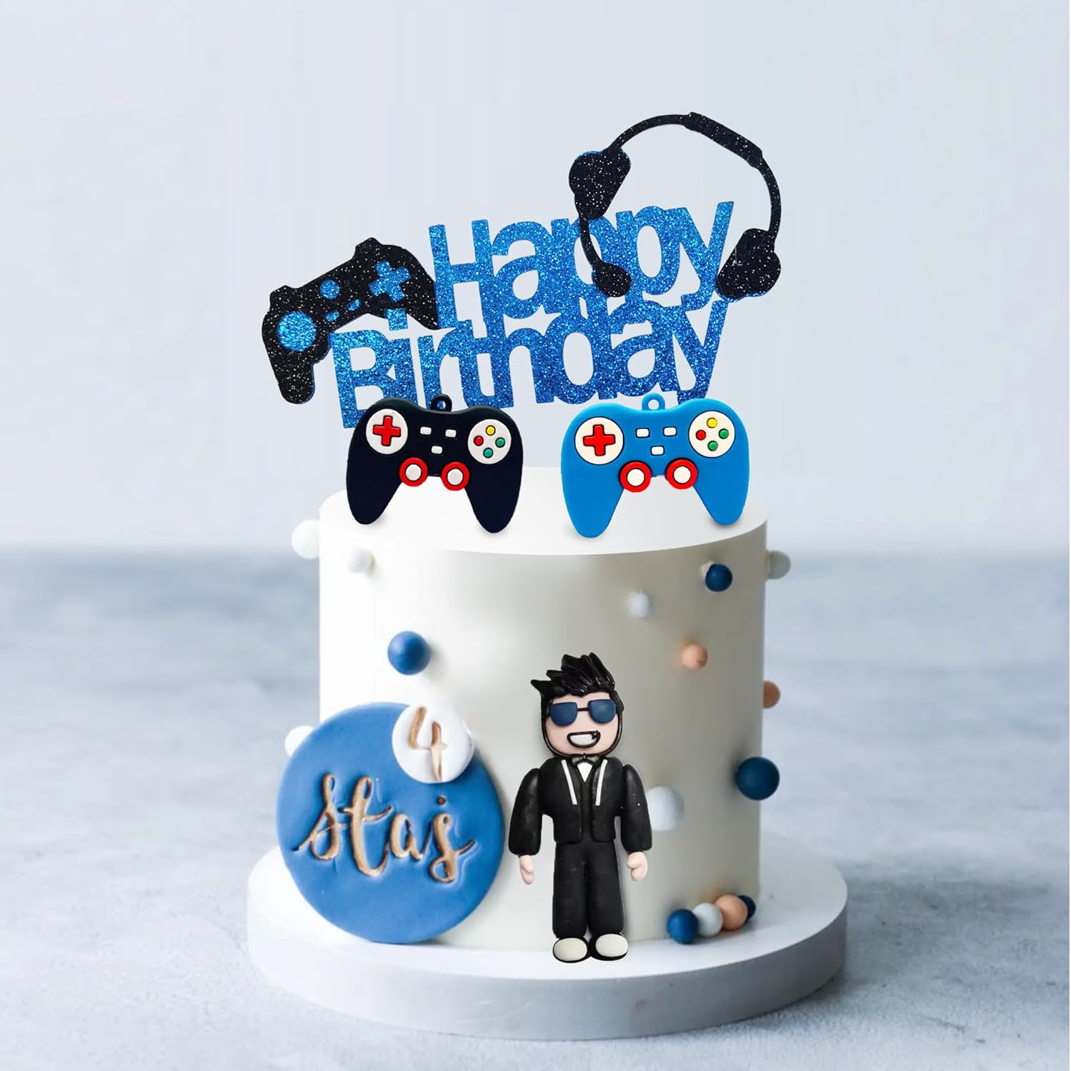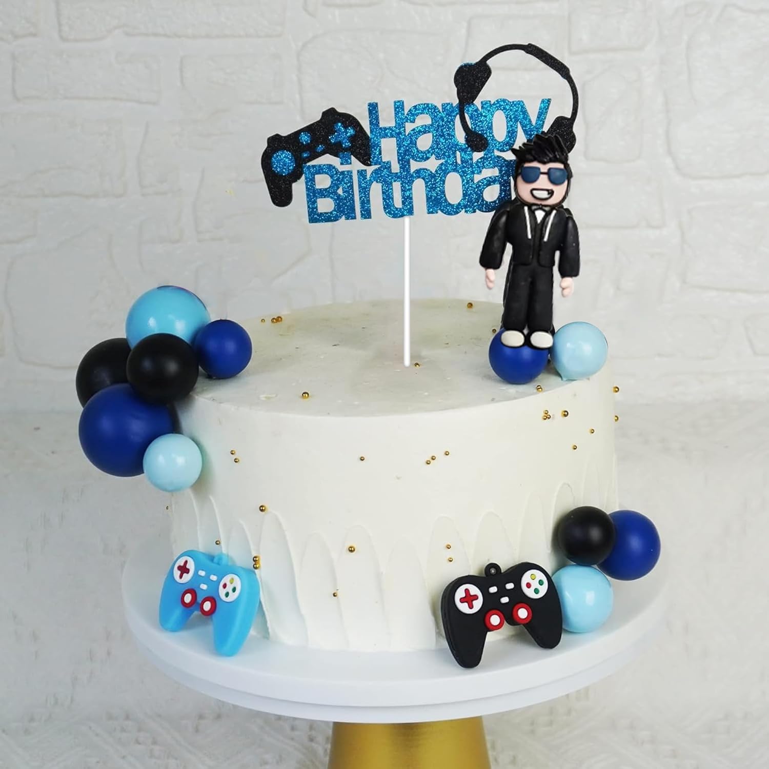 Video Game Cake Toppers Gamer Cake Decoration Game Controller Blue Black Ball Cake Toppers for Game Theme Party Man Boy Birthday Party Supplies (Style 1)