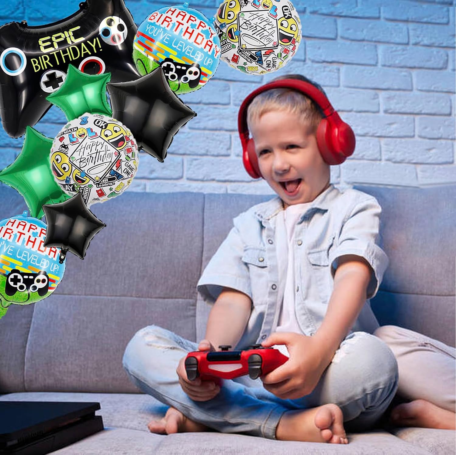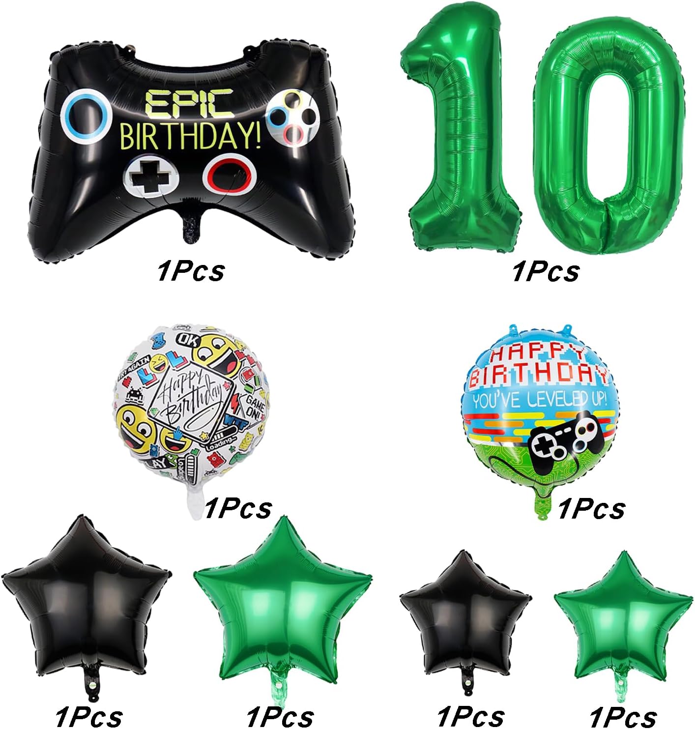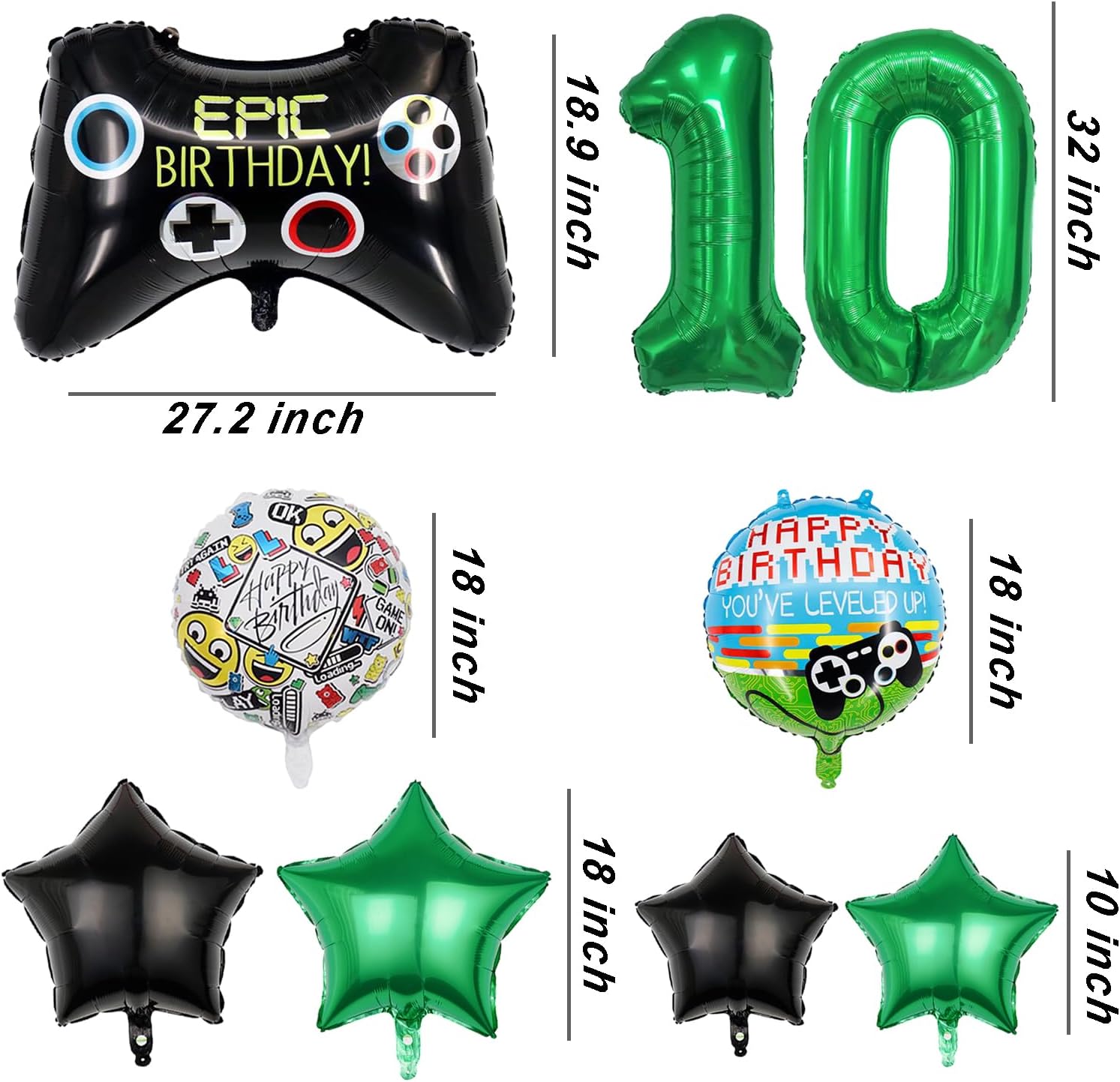 Video Game Party Balloons Set, Boys 10th Birthday Party Decorations – Video Game Controller Mylar Foil Balloon, for Video Game 10th Theme Birthday Party Kids’ Game Night Decor