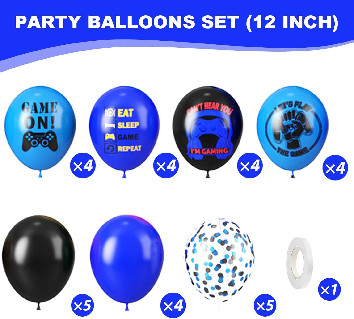 Video Game Party Balloons,Video Game Birthday Party Balloons Blue Black Confetti Game Theme Printed Balloons Decorations Gaming Latex Balloons for Teens Player Birthday Party Supplies
