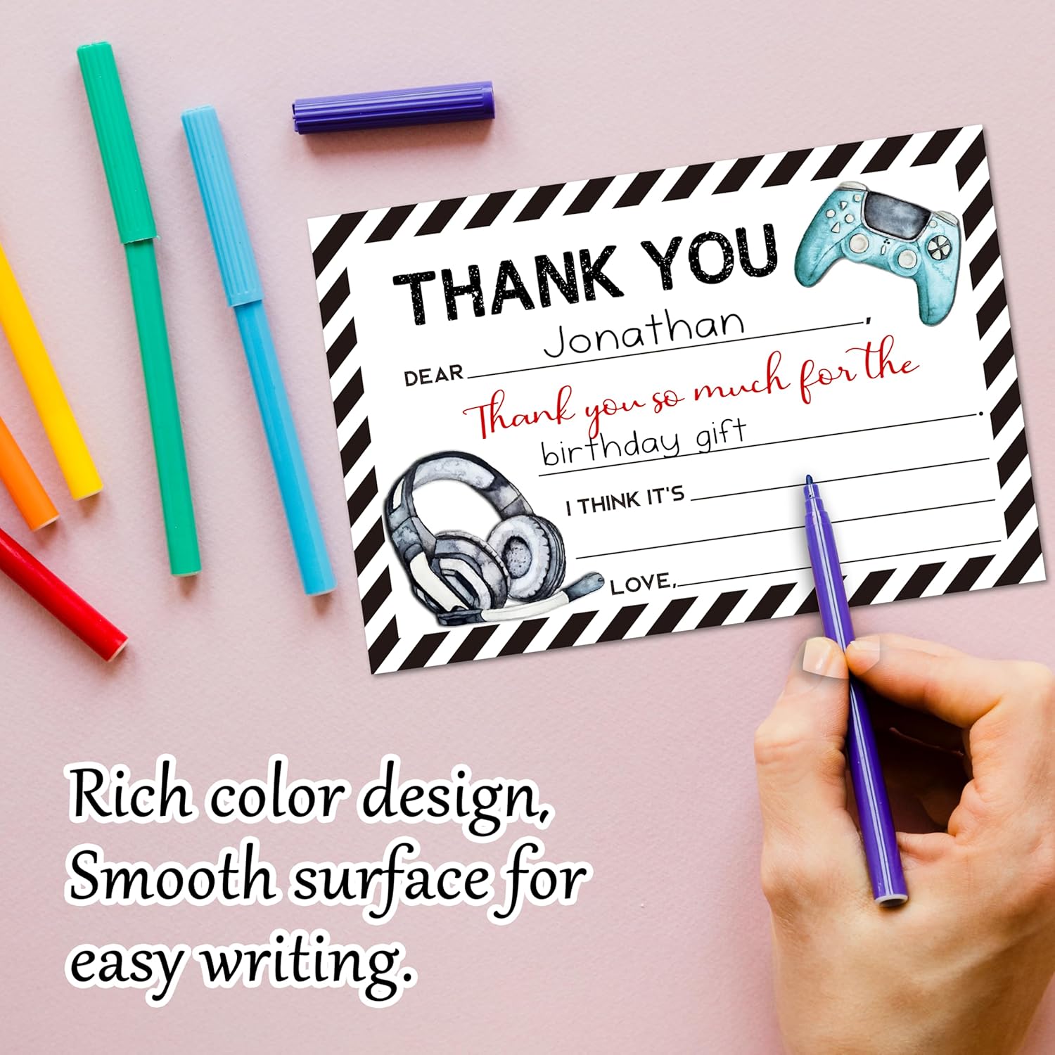 Video Games Kids Thank You Cards, Gamer Thank You Card For Birthday Party, Kids Birthday Cards Fill In The Blank, 20 Pack Greeting Cards With Envelopes For Boys And Girls, 005