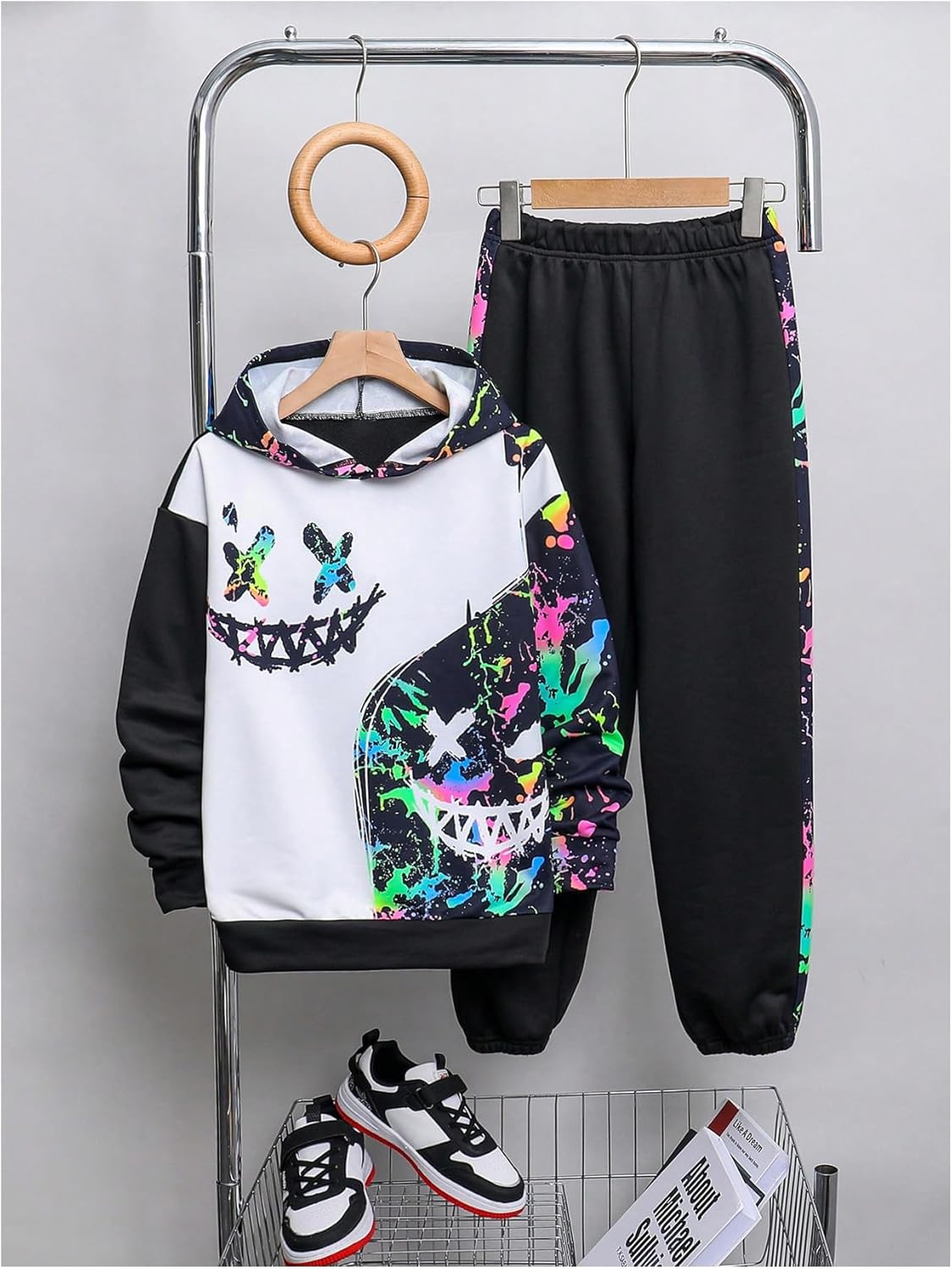 WDIRARA Boy’s 2 Piece Outfits Colorful Graphic Print Long Sleeve Hoodie and Sweatpants Set Tracksuit
