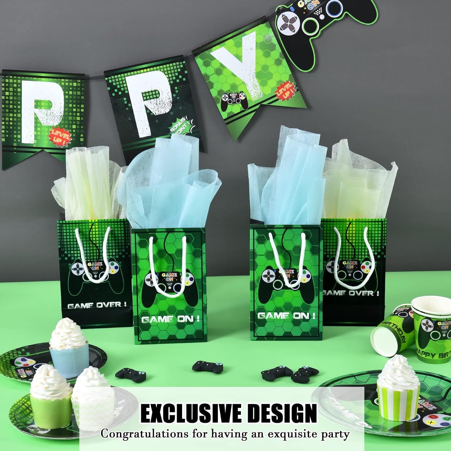 WERNNSAI 16 Pack Video Game Party Favors Bags – Gaming Birthday Party Goody Bags for Kids Boys Gamer Gift Bags Game On Candy Treat Bags with Handles Tote Goodie Bags Game Birthday Party Supplies