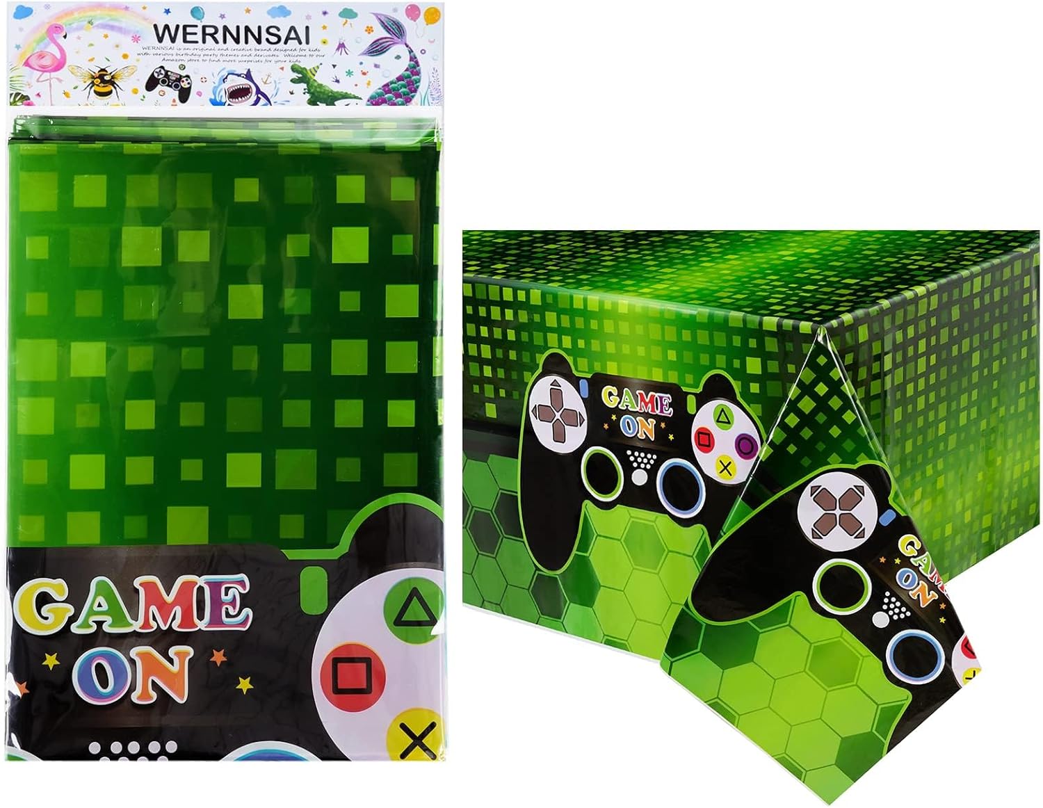 MATERIAL — Unlike your typical paper tablecloth, these disposable table covers for parties are spill and waterproof. Made of 0.04mm plastic. These game theme tablecloth are exclusive designed, they are safe and non-toxic.