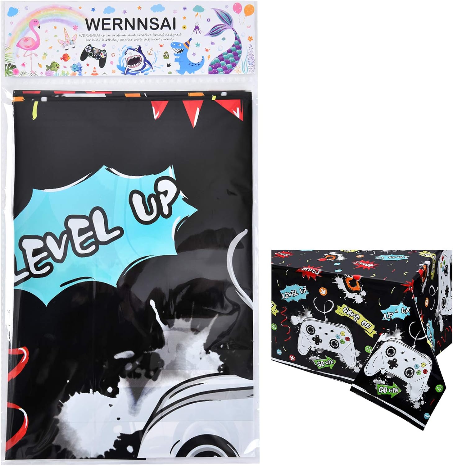 WERNNSAI Watercolor Video Game Party Tablecloth – 1 Pack 54” x 108” Video Game Party Supplies for Boys Birthday Party Decoration Disposable Plastic Table Cover for Kids Player Geek Game Themed Party