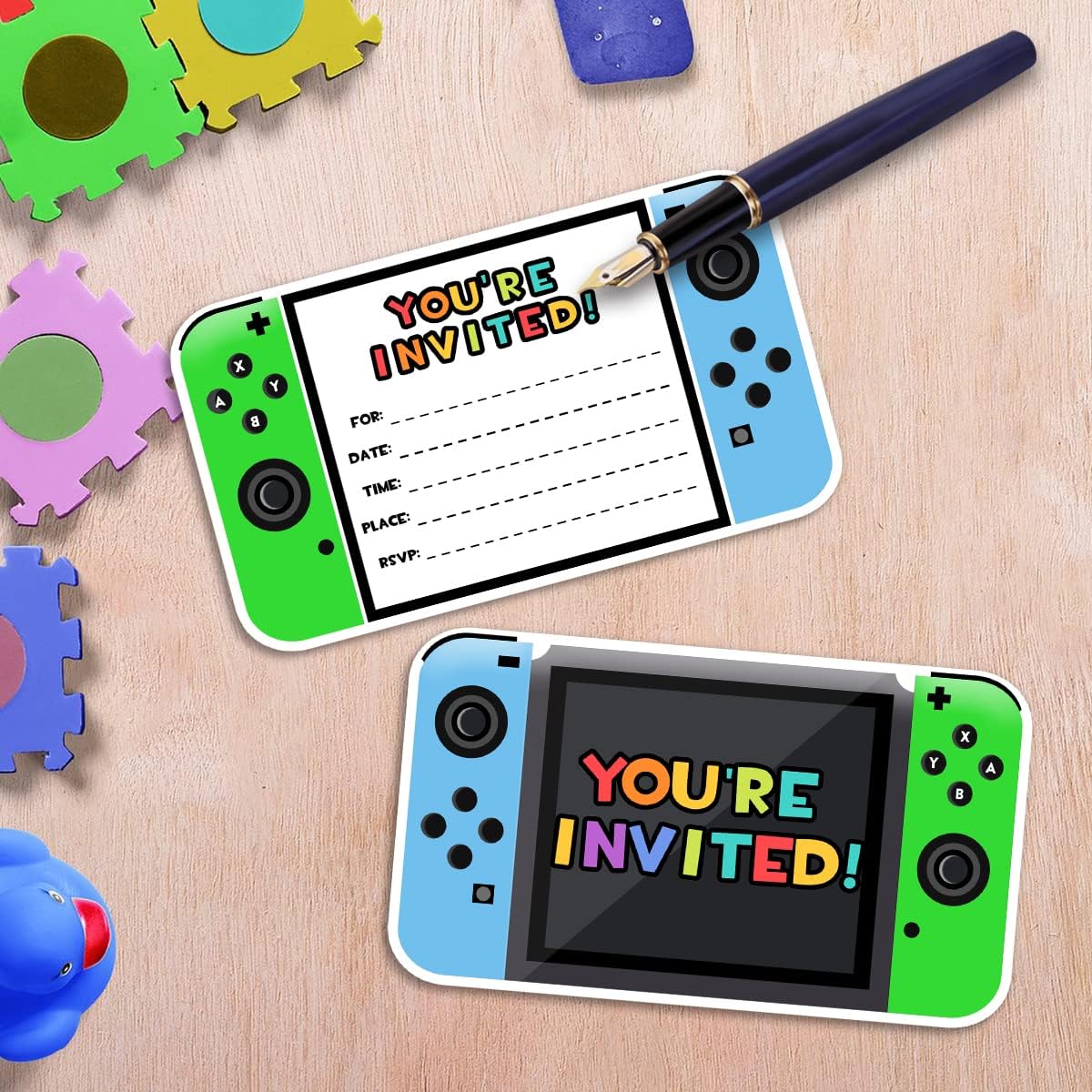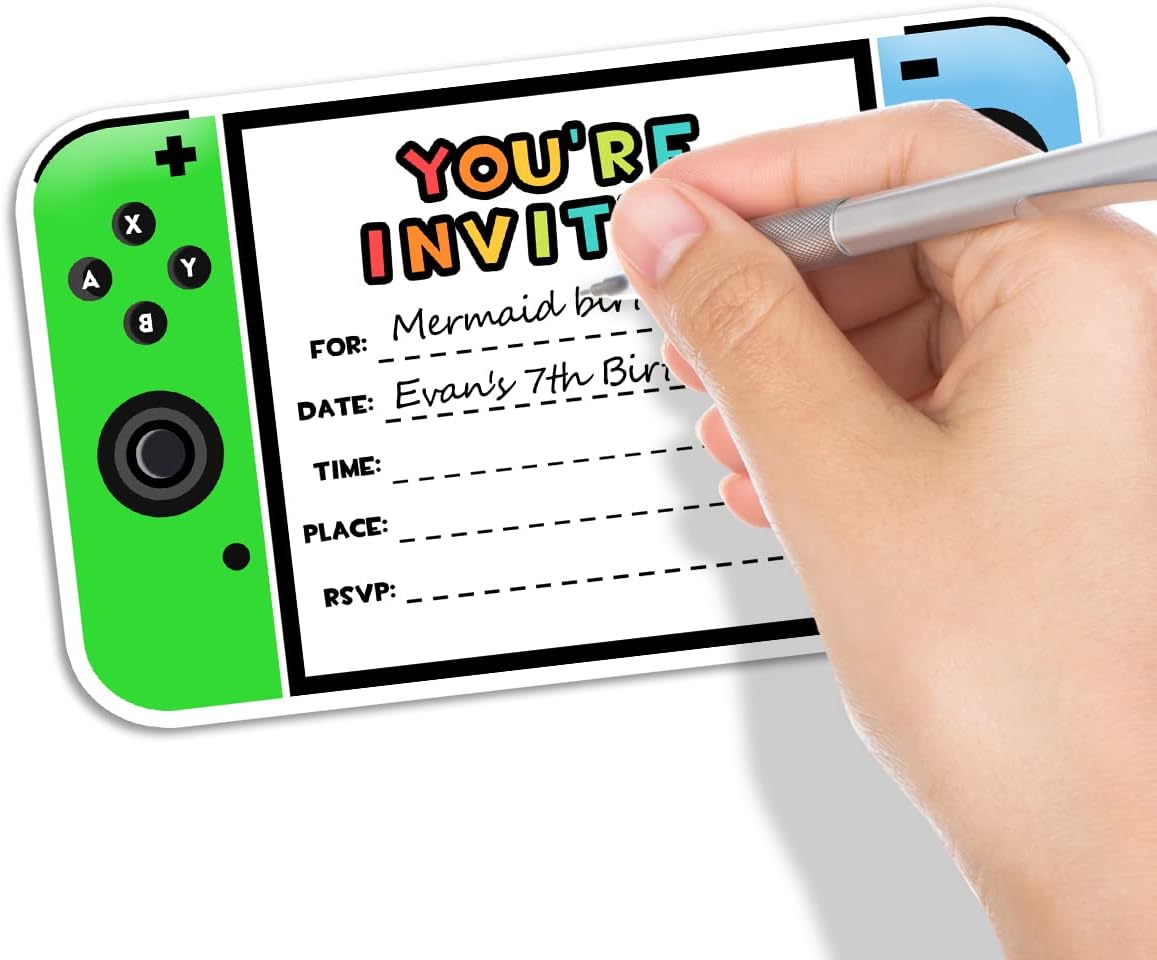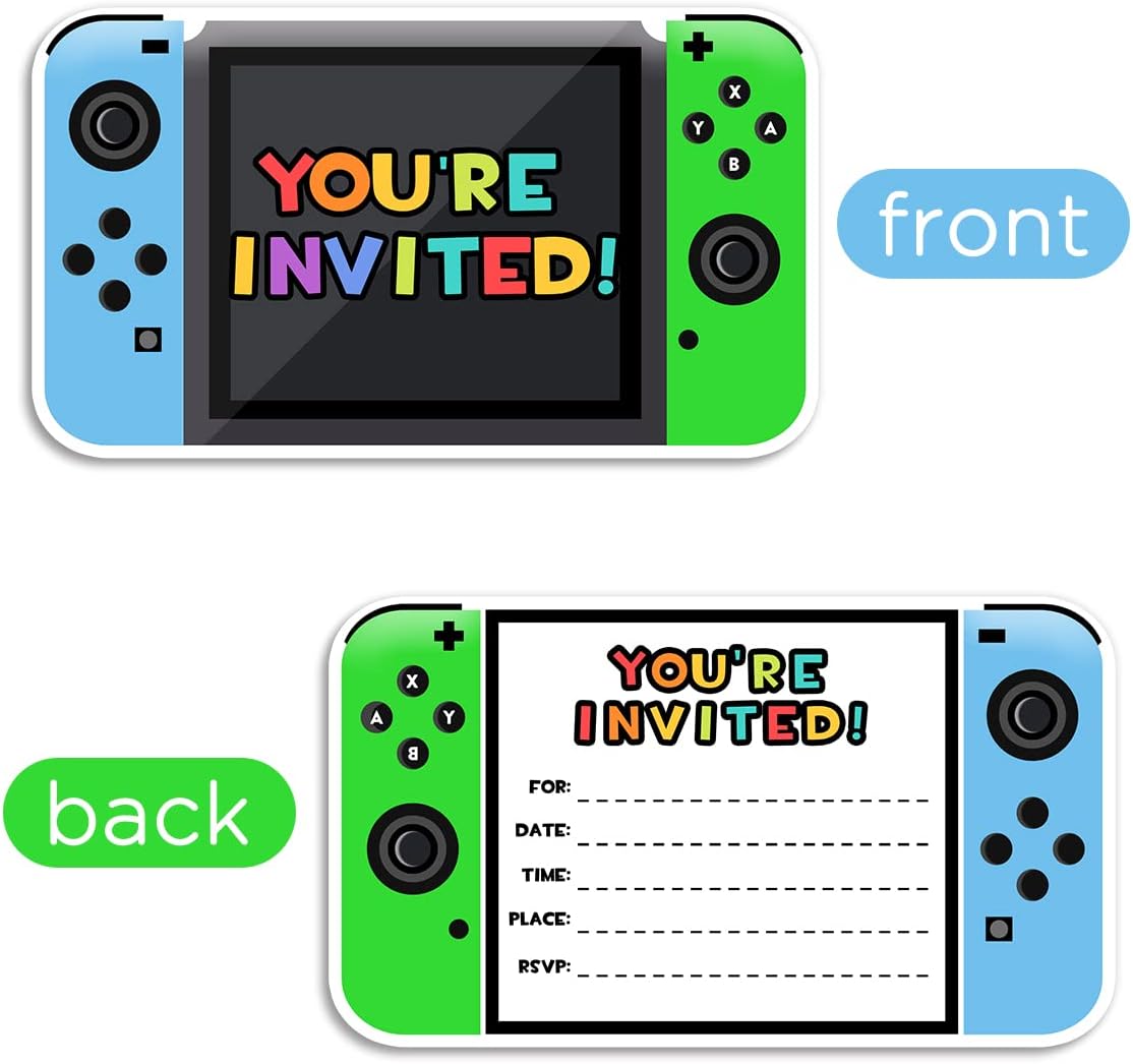 Yangmics Direct Video Game Invitations, 30 Pack with Envelopes for Boys Kids Birthday Party Decorations Supplies, Favors