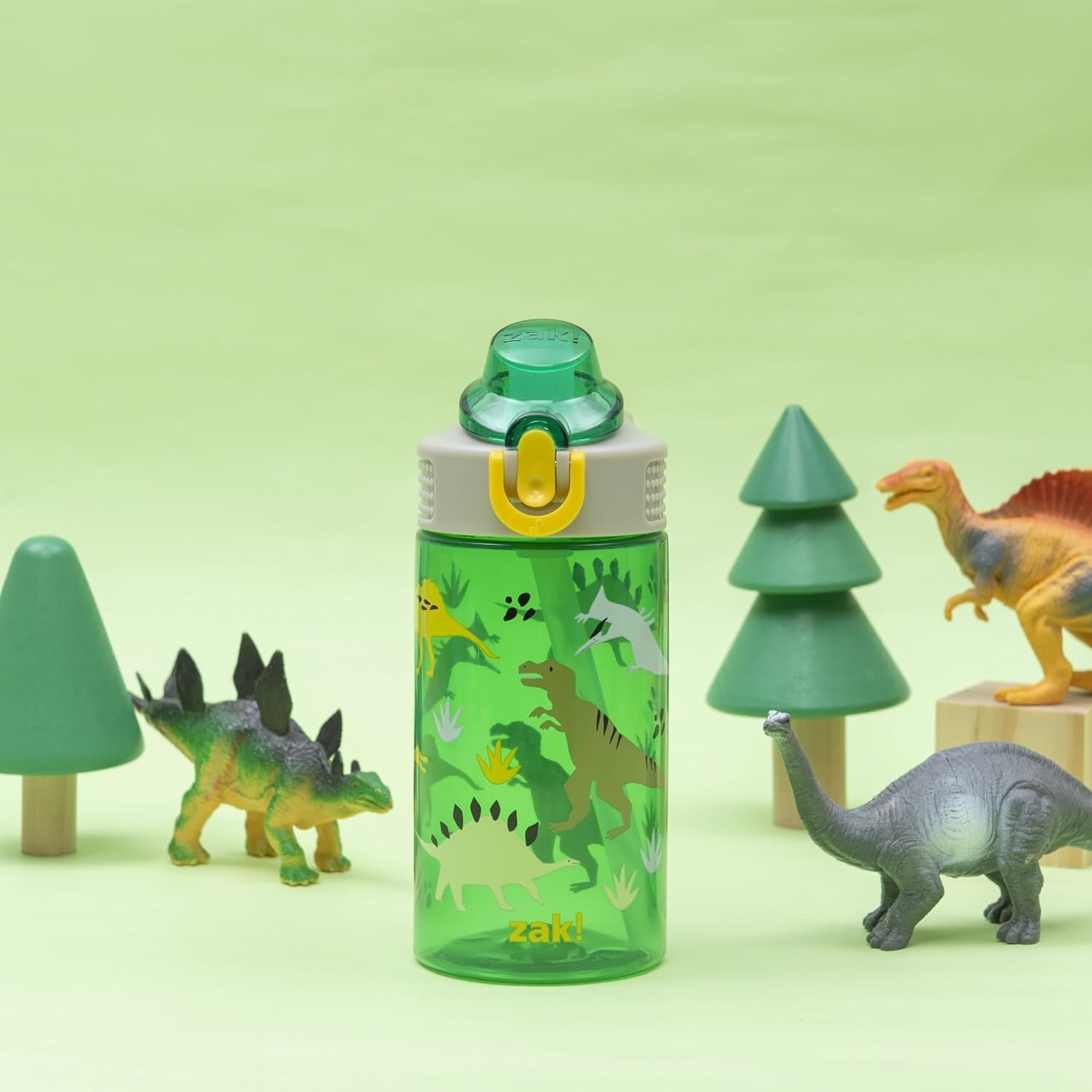Let kids enjoy hydration with a fun water bottle by zak! designs! Easy to Clean: The silicone spout and straw can be removed from the lid, and the pieces are dishwasher safe for simple cleanup at the end of the day. Reusable and Durable Material: Reusable water bottles will last wash after wash—good news for you and the environment! The 16 oz water bottle is made of PP plastic, durable enough for kids to use every day and bring on any adventure. Leak-Proof Lid: The lid screws on securely and won’t leak when the spout is closed, though water flows for easy drinking when the spout is open. The easy-open button has a flip-up lock to keep it from activating accidentally. On the Go: The water bottle has a built-in carrying loop on the lid for easy transportation, and with the spout cover to keep the spout clean and closed, it can be tossed into a bag for worry-free travel. Specifications: 16 oz capacity. Made of durable plastic. BPA-Free – zak! is committed to safety. Dishwasher safe, do not microwave. Length: 4.33-inch, Width: 2.78-inch, Height: 7-inch. Design: Dino.