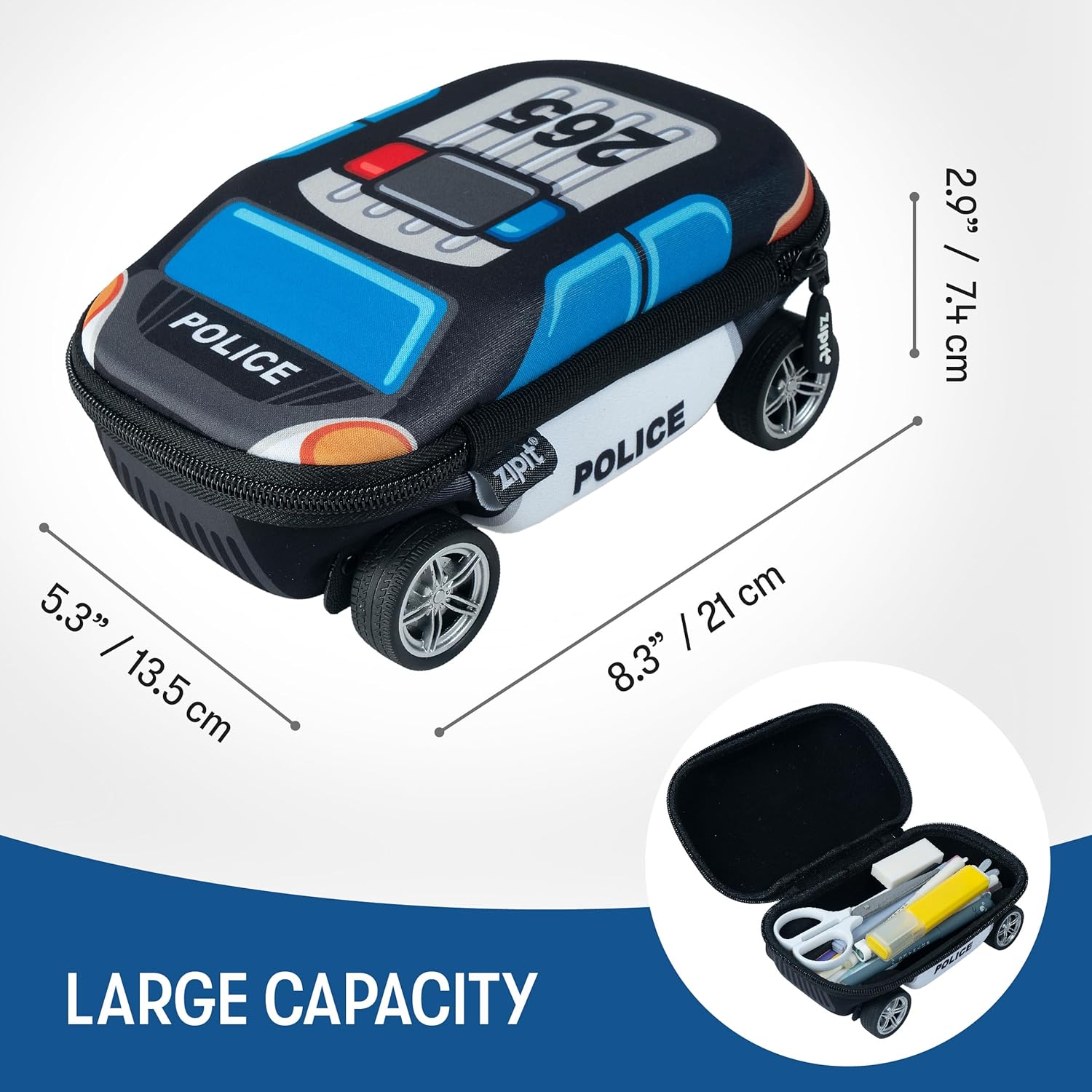 ZIPIT Police Car Pencil Case for Boys, Large Capacity Pencil Box for School